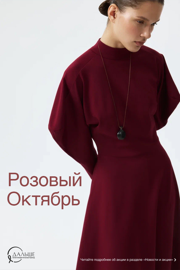 Вы тоже можете поддержать проект вместе с нами! В период с 10 по 31 октября мы будем перечислять 500 рублей с каждого проданного платья (в розничных магазинах и онлайн) в фонд «Дальше». Эти средства будут направлены на программы поддержки для женщин с раком молочной железы.