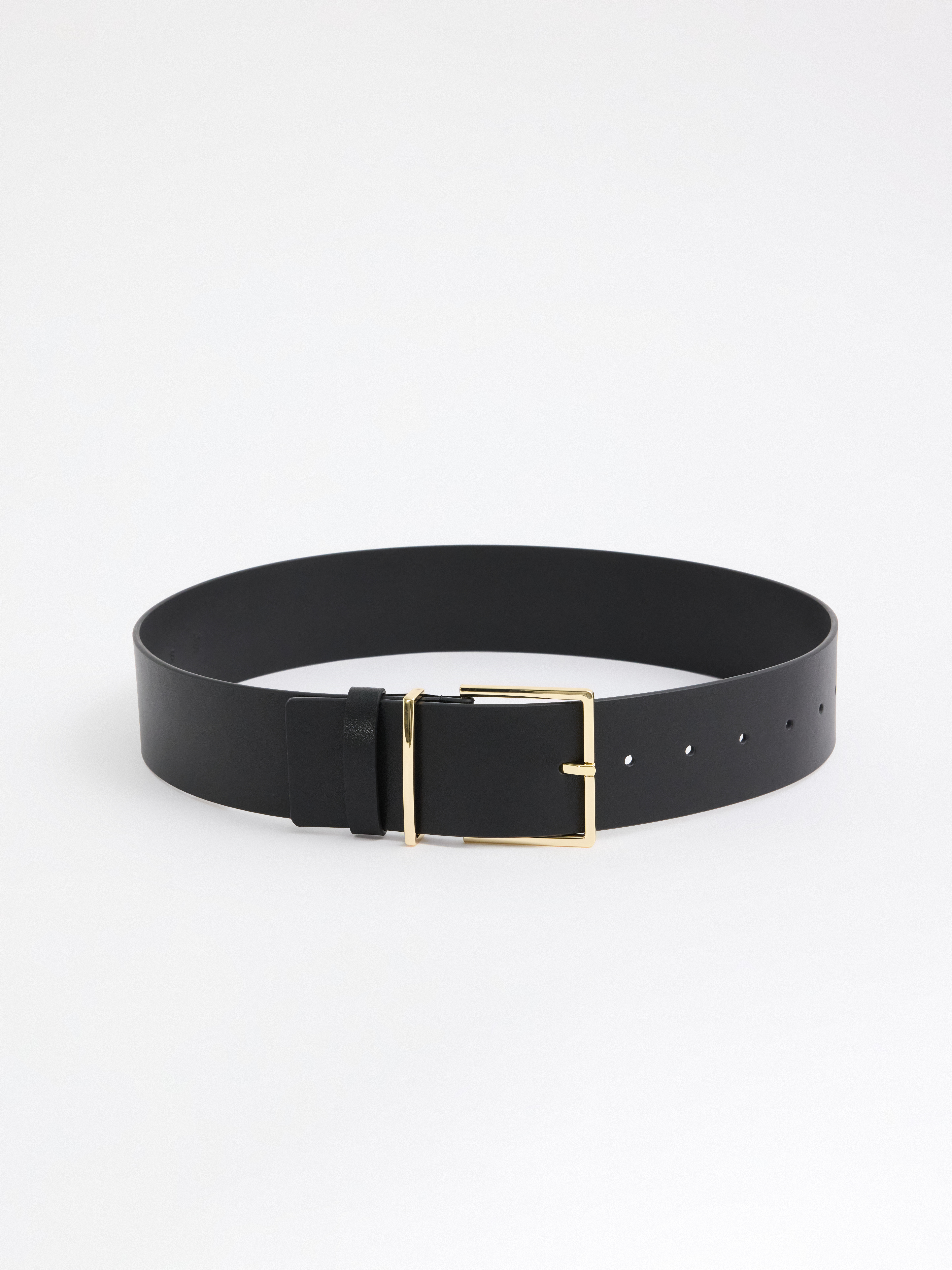 Широкий ремень станет незаменимым элементом гардероба: стилизуйте его с пальто или жакетом, чтобы образ заиграл по-новому. Аксессуар полностью выполнили из гладкой искусственной кожи.