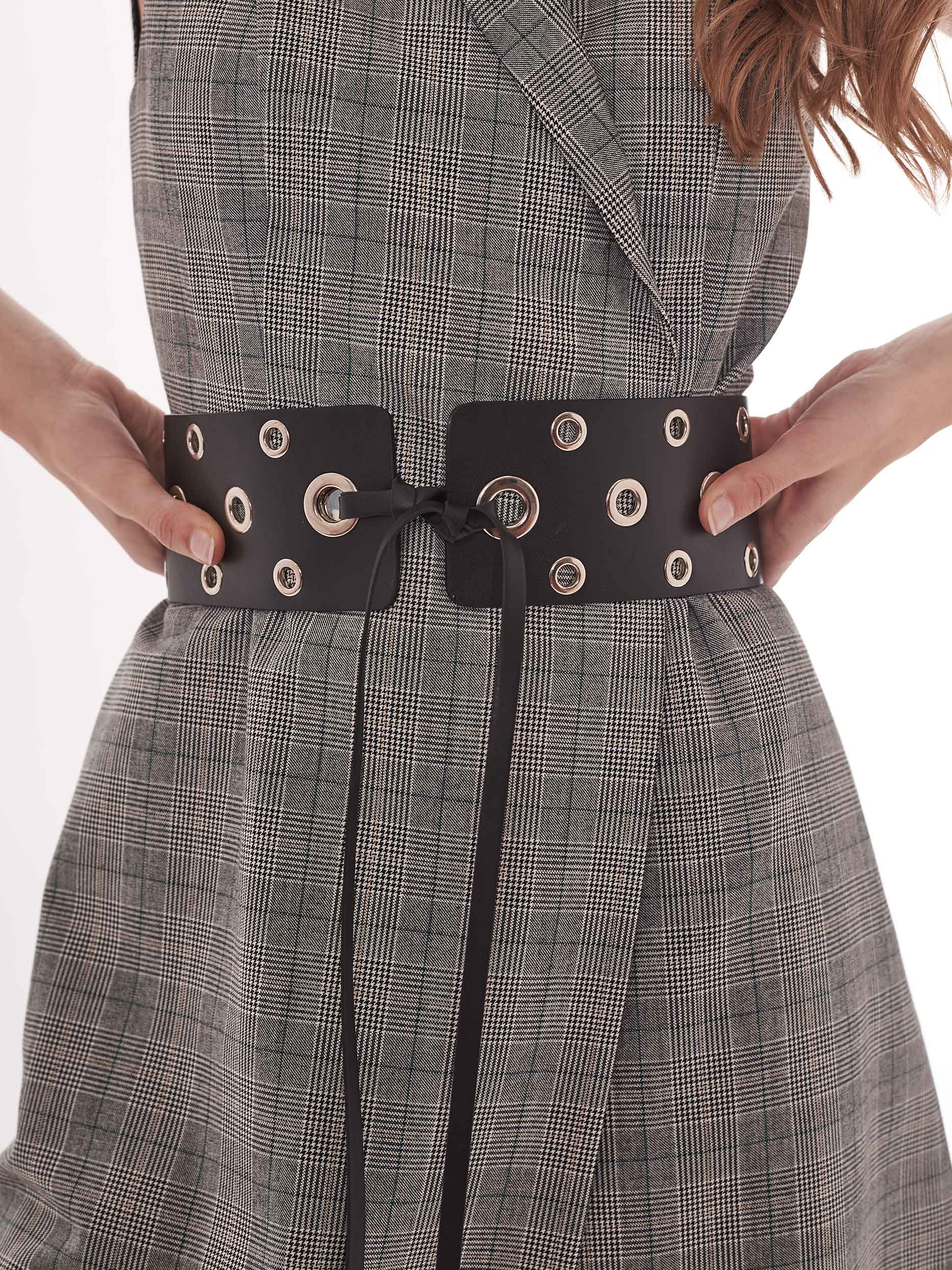 Широкий ремень, выполненный из экокожи, с люверсами. Завязывается на узкую ленту из экокожи в тон.
