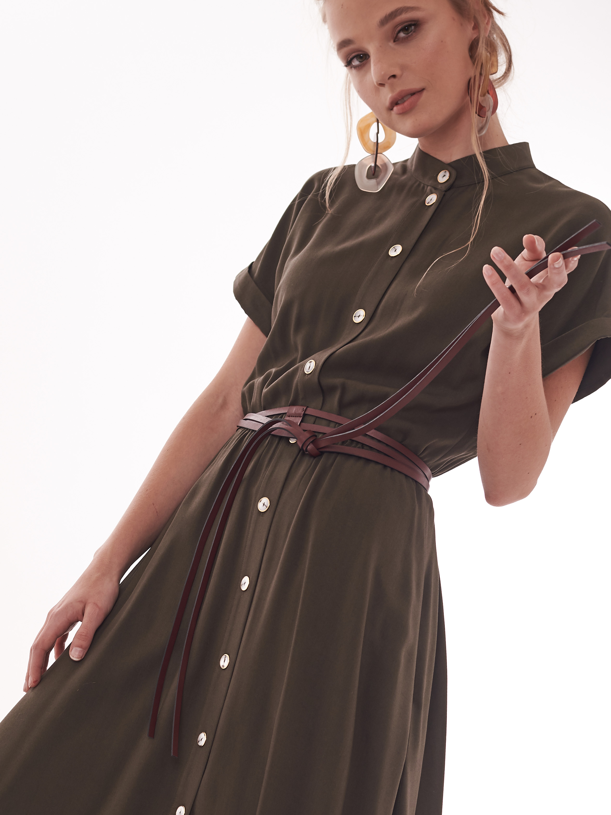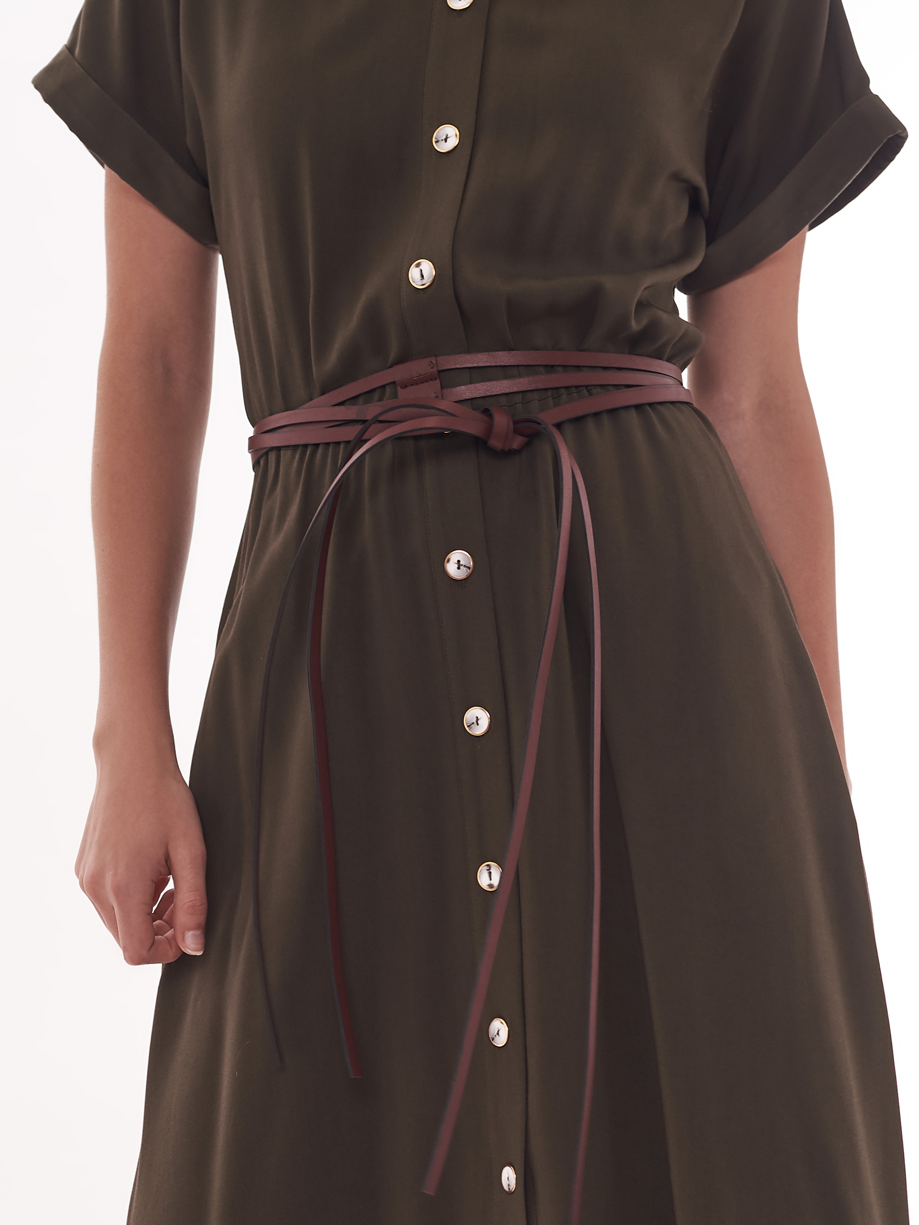 Ремень, состоящий из трех лент, выполненных из экокожи.