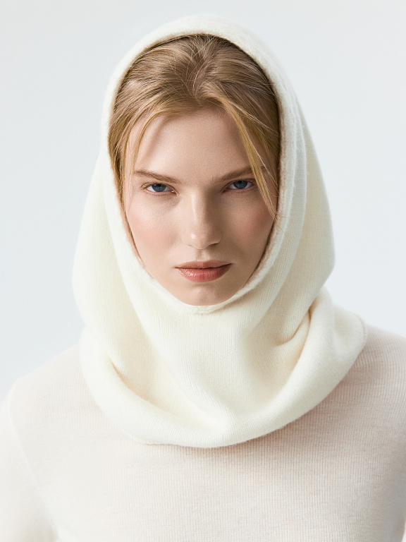 Теплый капор – находка для холодной зимы, потому что одновременно выполняет роль шапки и шарфа. Пряжа из мериносовой шерсти мягко касается лица и не колется. Модель удачно сочетается как с шубой, так и с пуховиком.