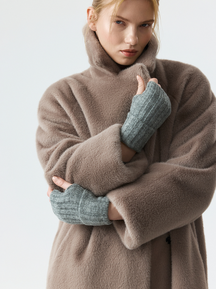 Вязаные митенки – идеальный аксессуар для прохладного сезона. Пряжа с содержанием натуральной шерсти обладает высокими согревающими свойствами, а волокна акрила придают износоустойчивость. Плотный материал не колется и комфортно касается кожи рук. Открытие кончики пальцев позволяют легко взаимодействовать с гаджетами.
