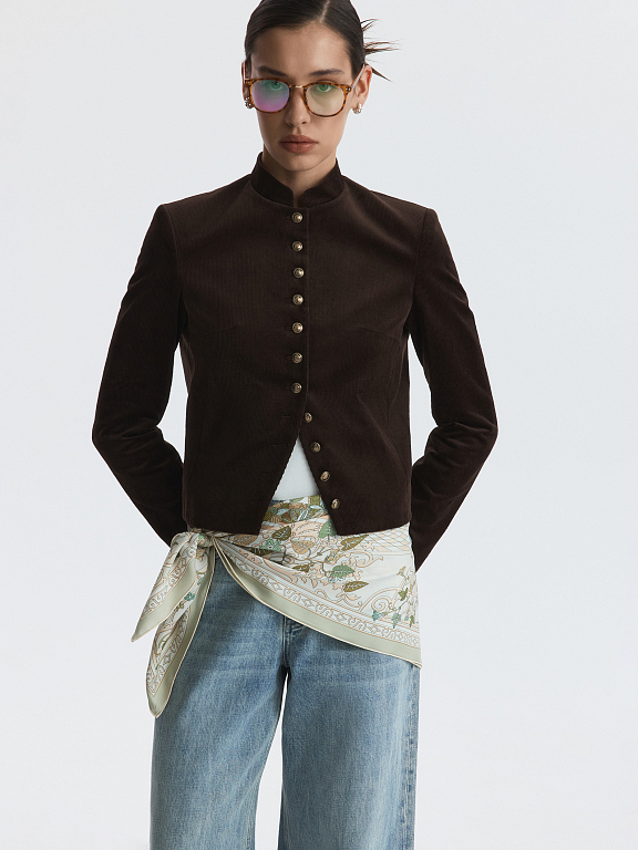 Двухсторонний платок станет многофункциональным аксессуаром: помимо традиционных способов его можно завязать на талию или носить как топ. Гладкий текстиль с содержанием натурального шелка подарит приятные тактильные ощущения.