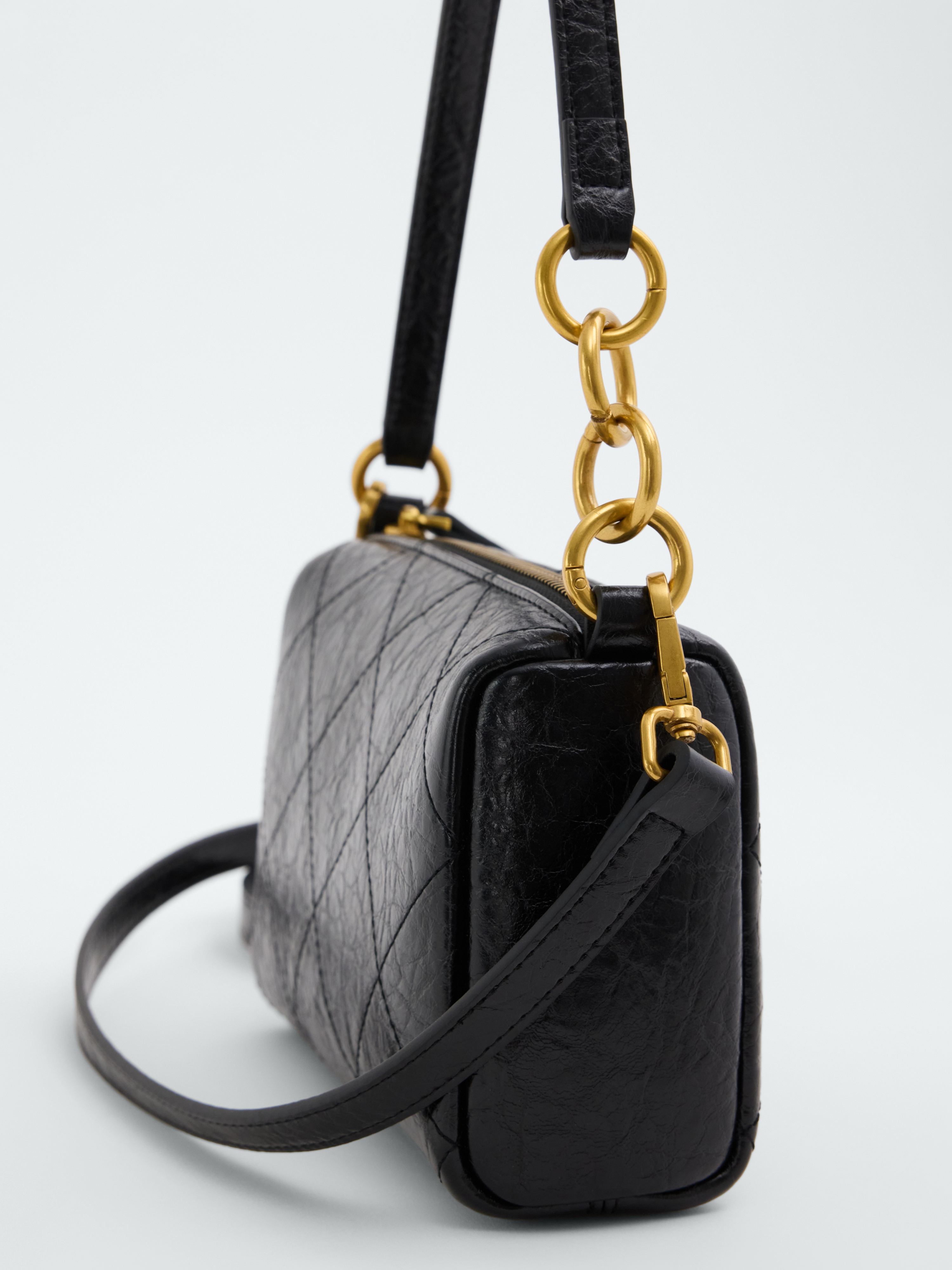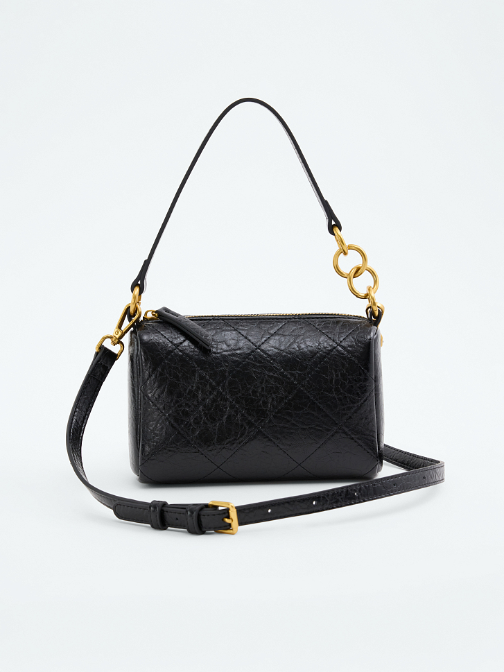 Стеганая сумка компактного размера – универсальная модель на каждый день, которая позволяет иметь под рукой все самое необходимое. Она легко интегрируется в различные образы, делая их более утонченными. В основном отделении удобно расположатся кошелек и смартфон, а в карманах поместятся карточки. Изделие можно носить в двух вариантах: на длинном ремне или в руке на короткой ручке.
