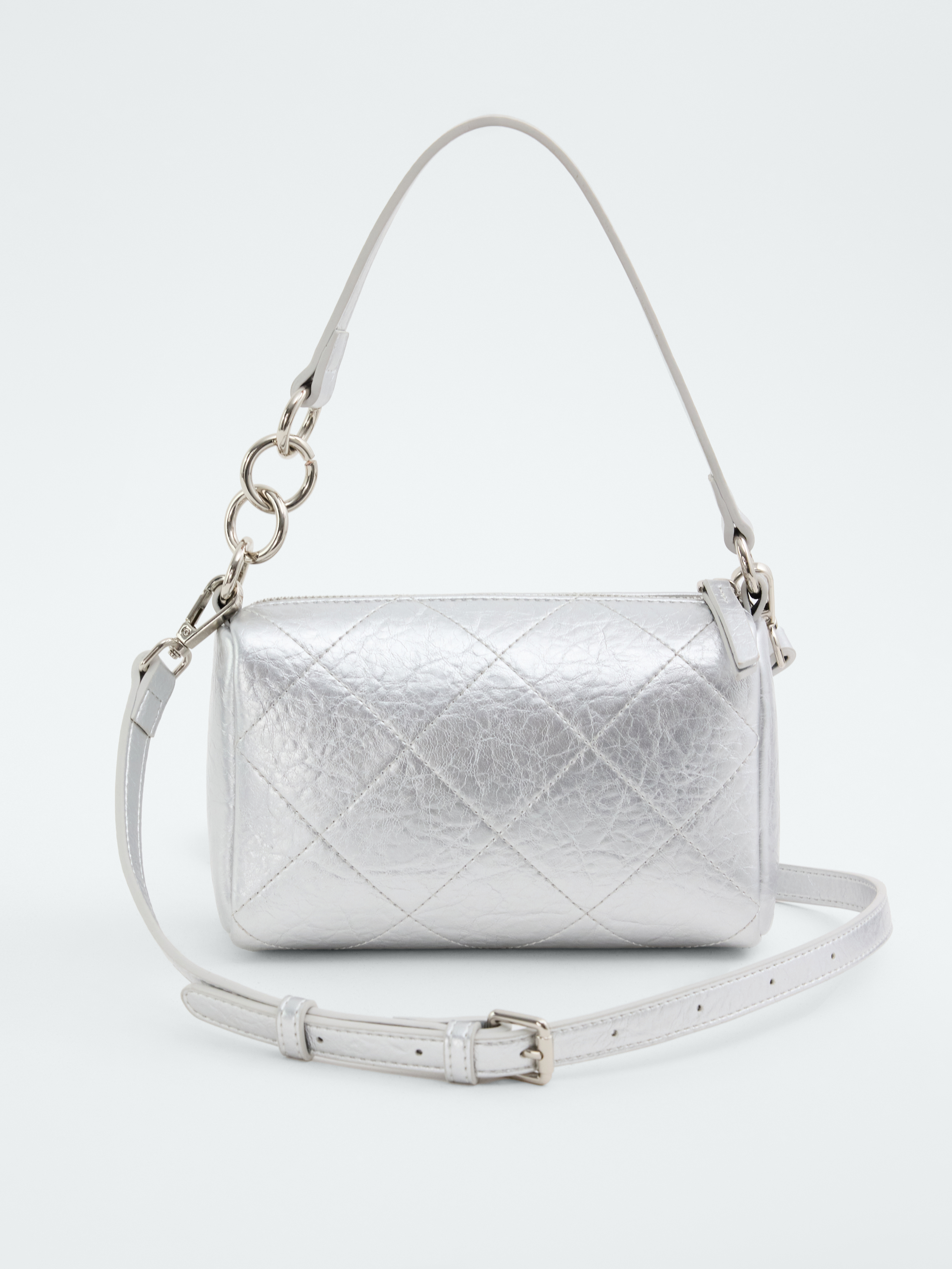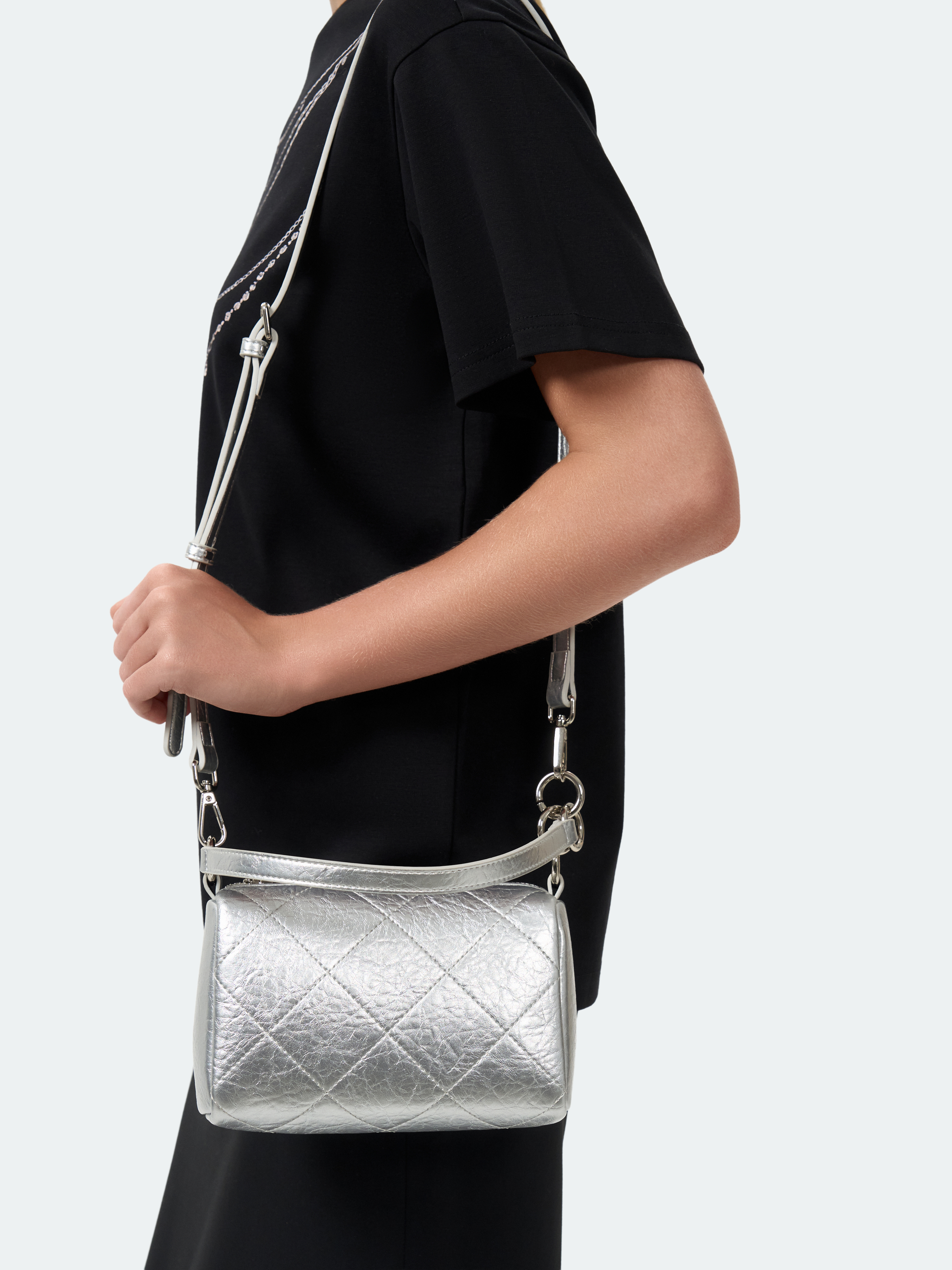 Стеганая сумка компактного размера – универсальная модель на каждый день, которая позволяет иметь под рукой все самое необходимое. Она легко интегрируется в различные образы, делая их более утонченными. В основном отделении удобно расположатся кошелек и смартфон, а в карманах поместятся карточки. Изделие можно носить в двух вариантах: на длинном ремне или в руке на короткой ручке.