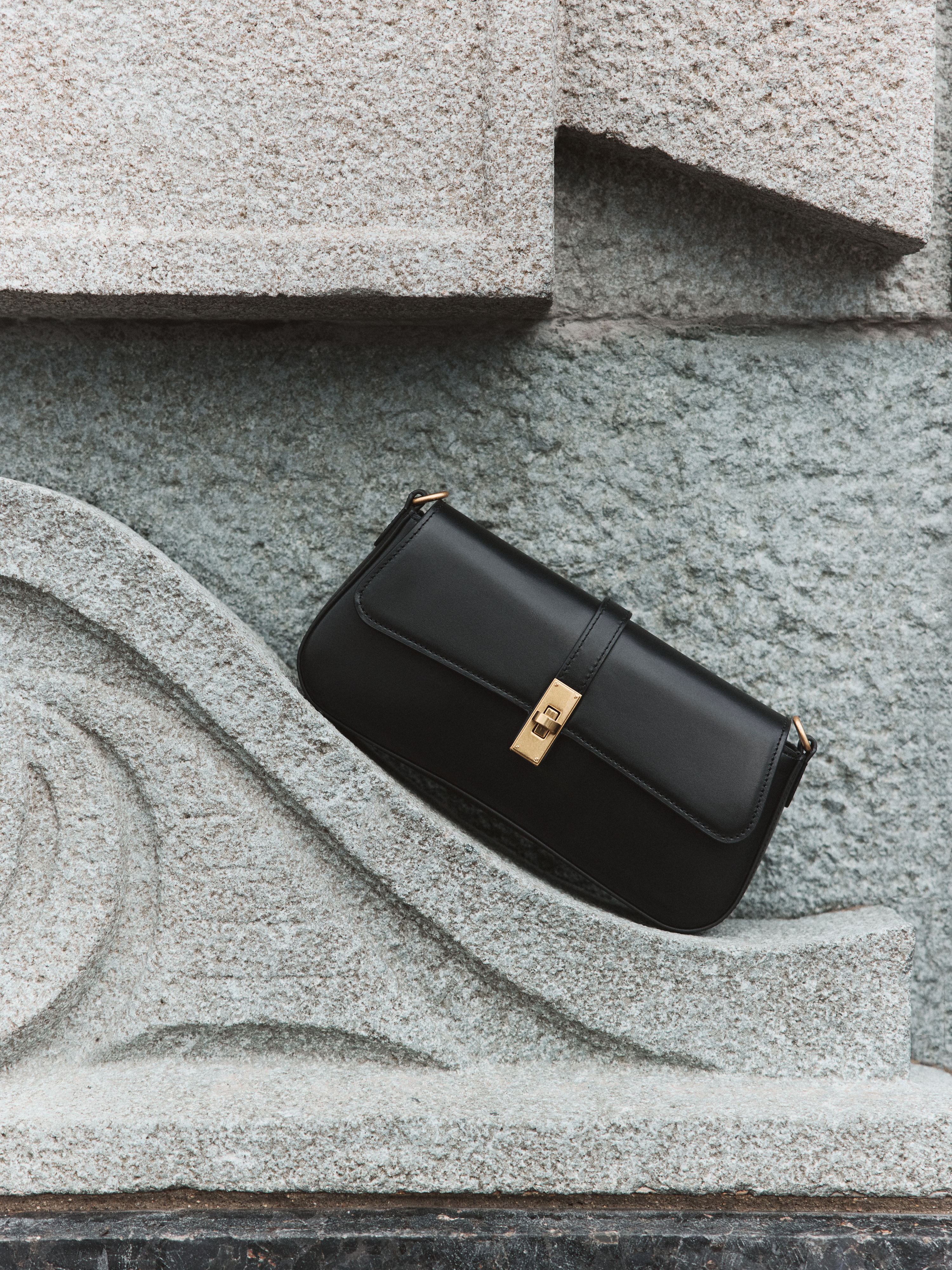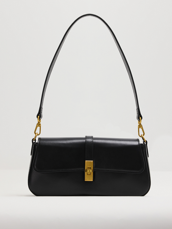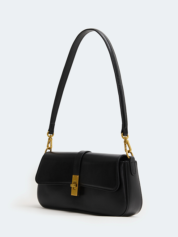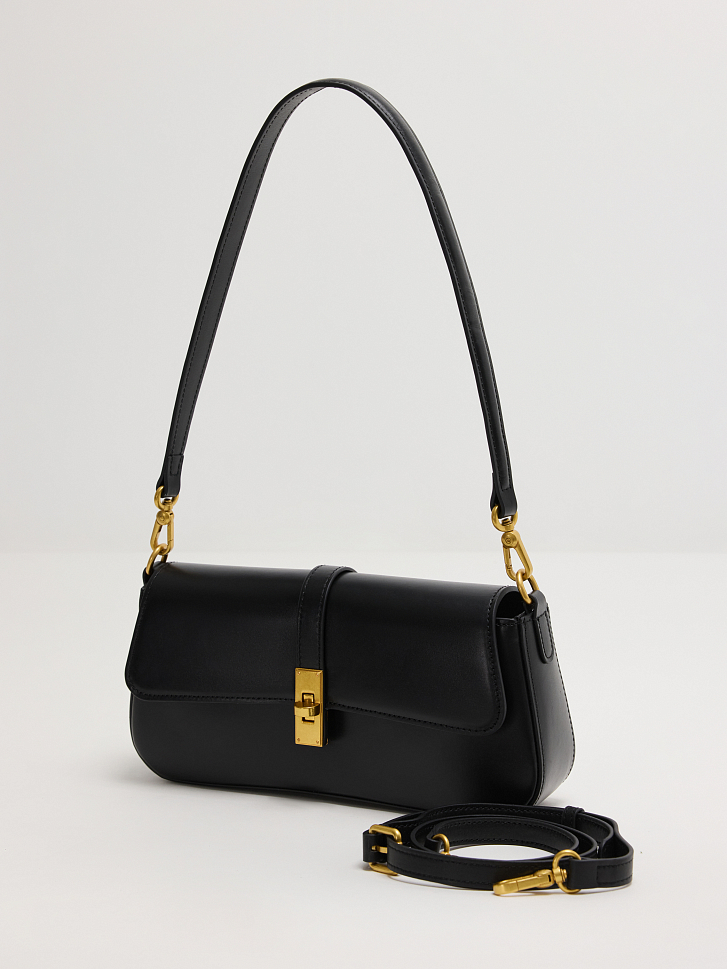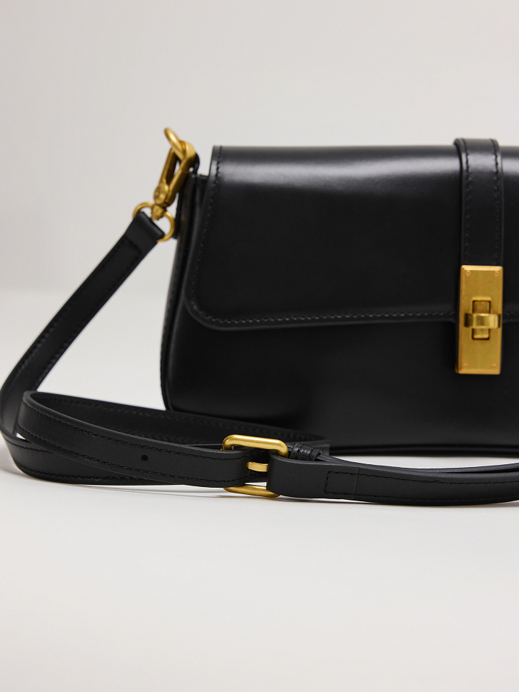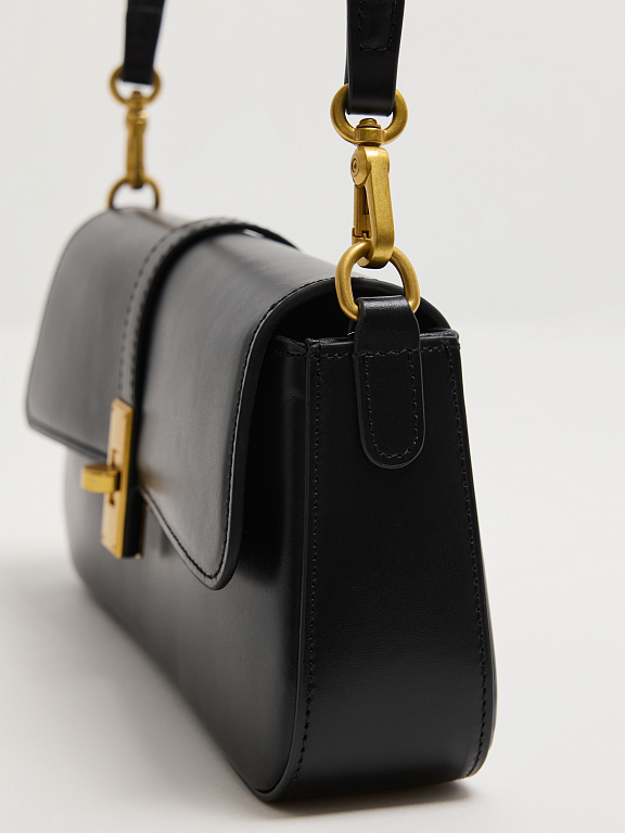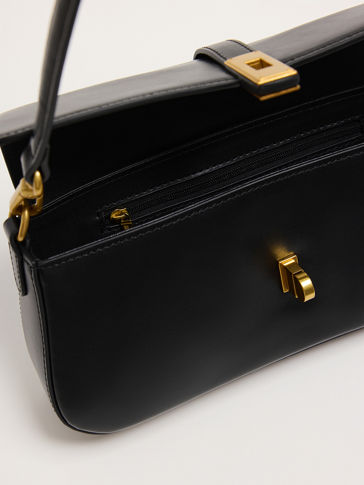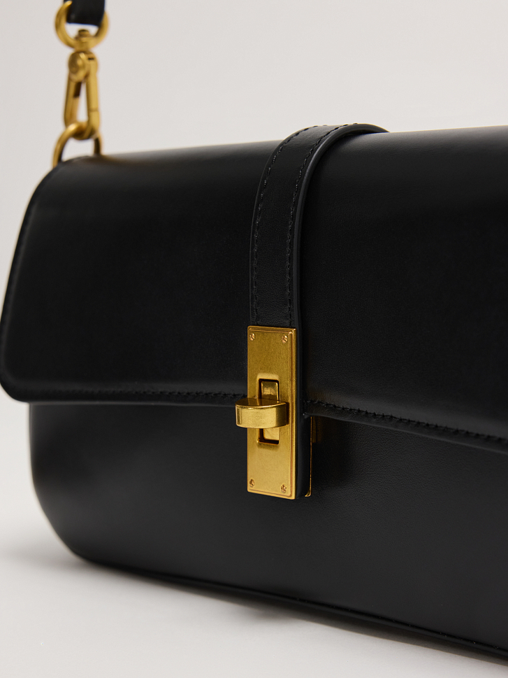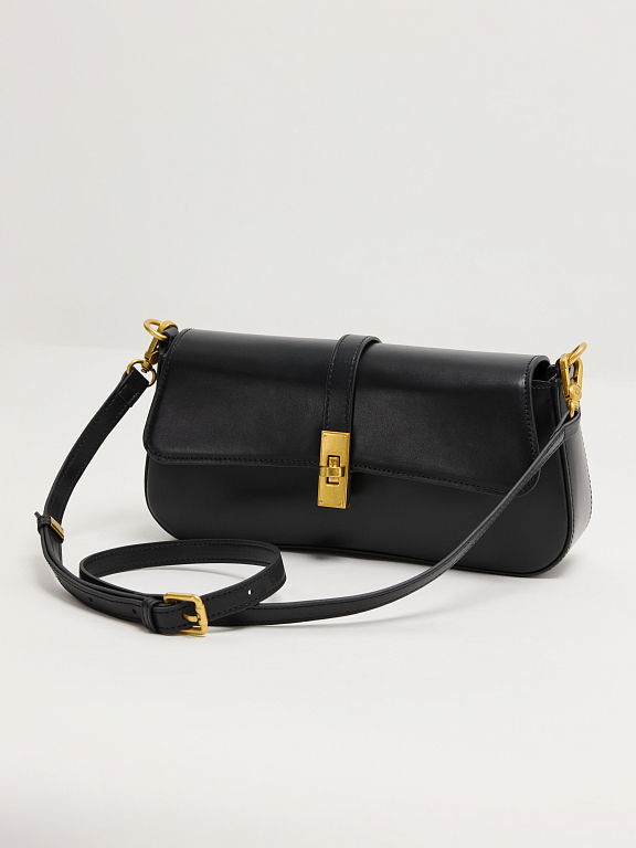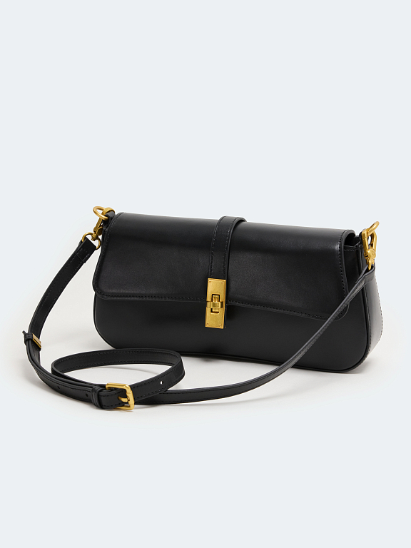 Сумка-багет уже несколько сезонов остается в трендах. Каркасную модель выполнили из гладкой натуральной кожи. Основное отделение закрывается на замок и компактно разместит внутри кошелек и смартфон. Изделие можно носить в двух вариантах: на длинном ремне или в руке. Лаконичная сумка легко впишется в гардероб любого стиля.
