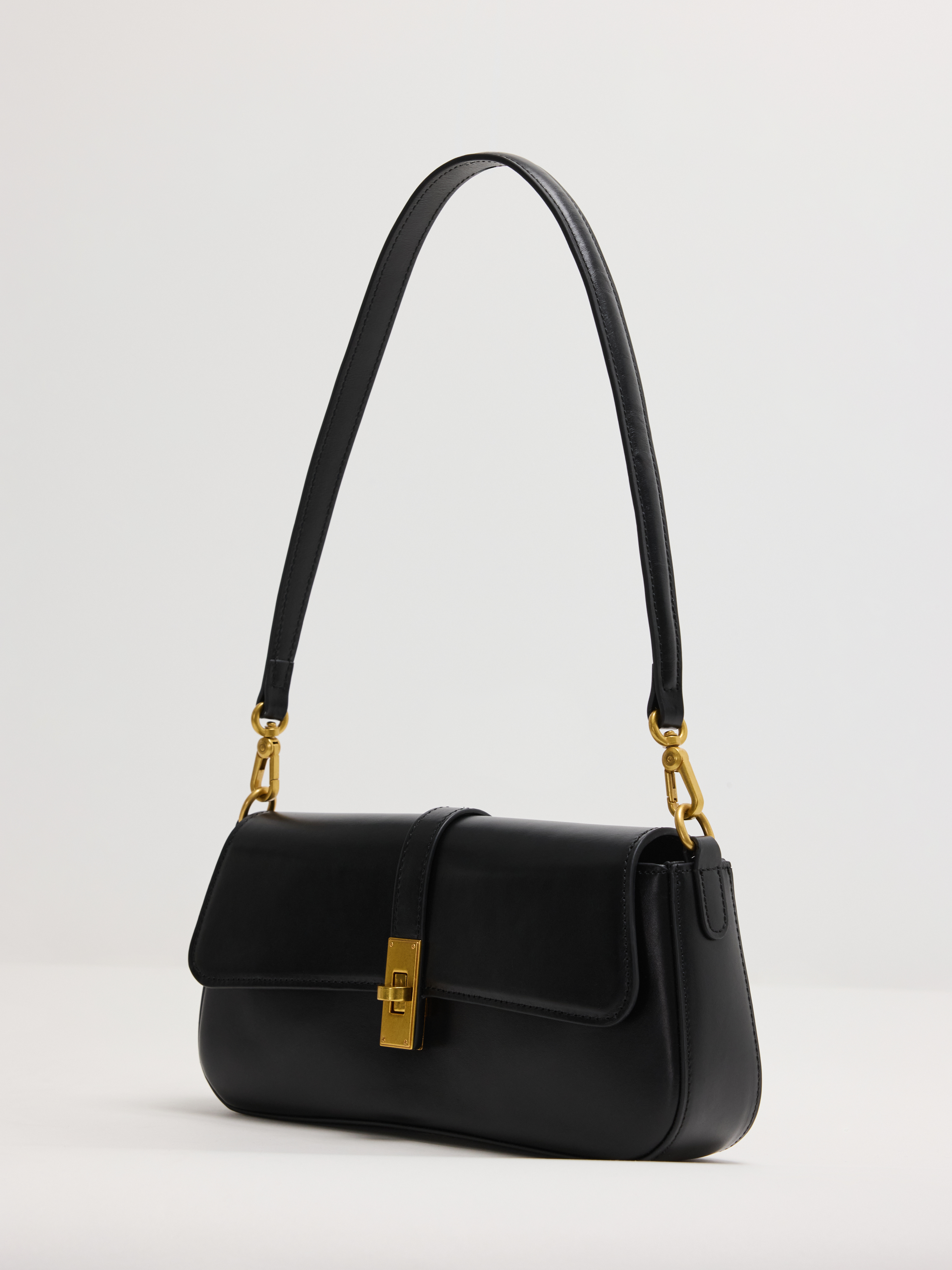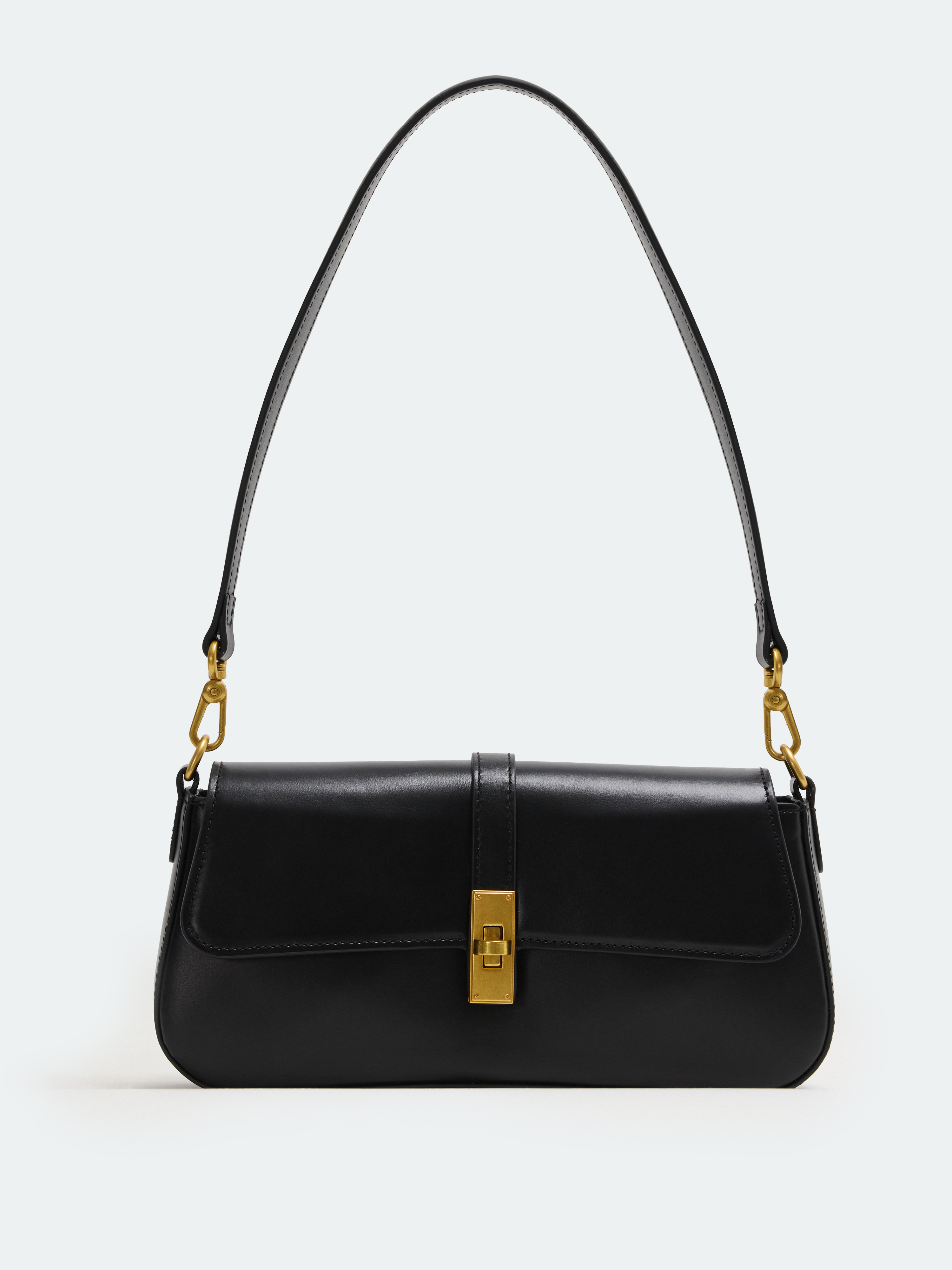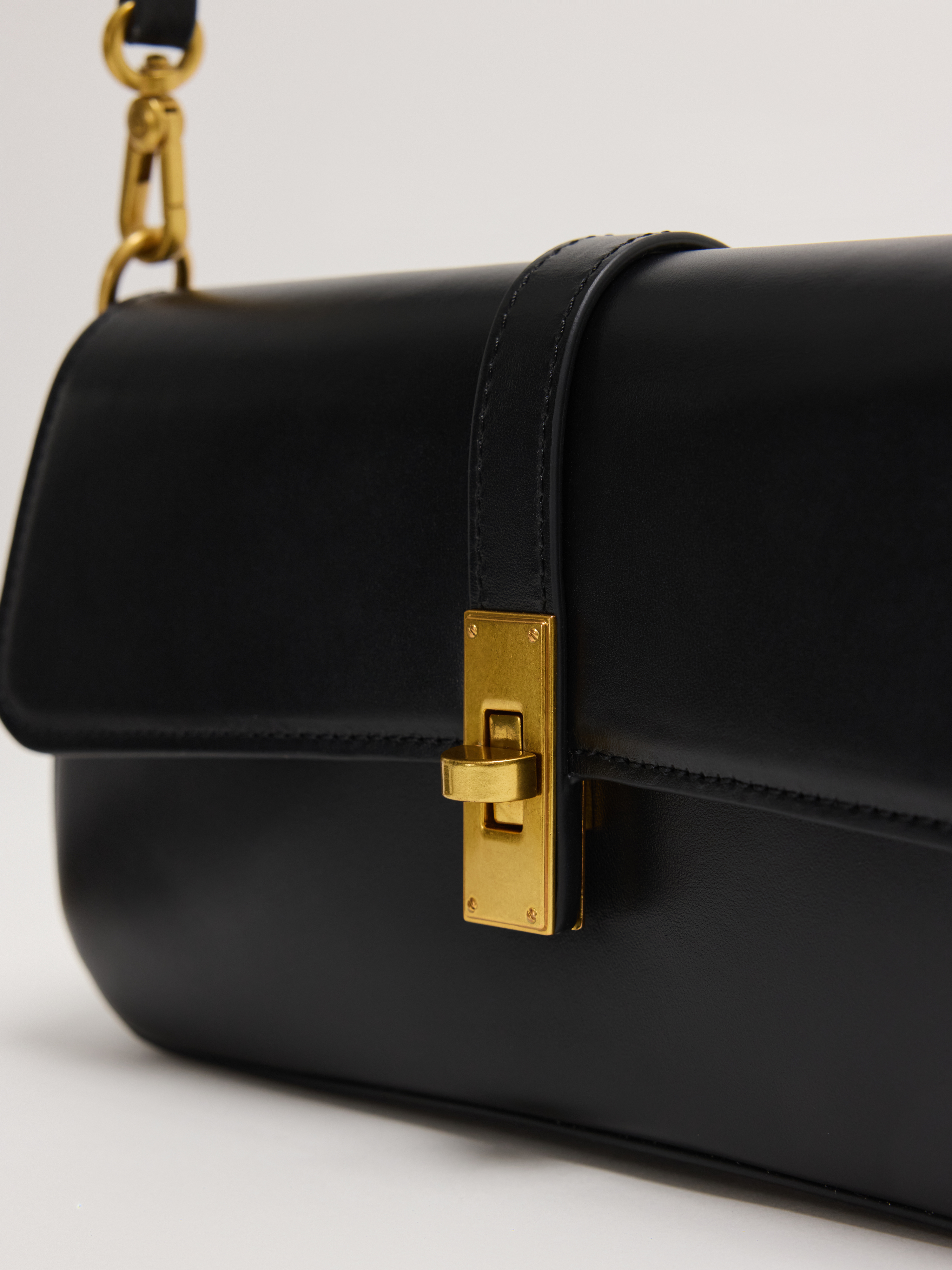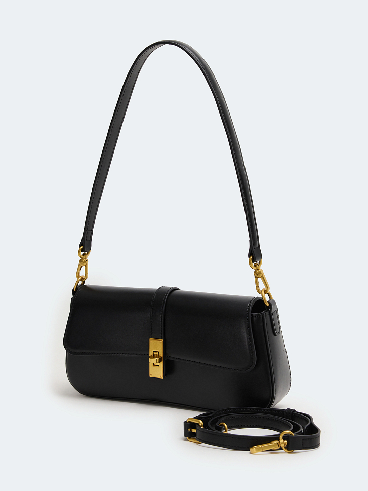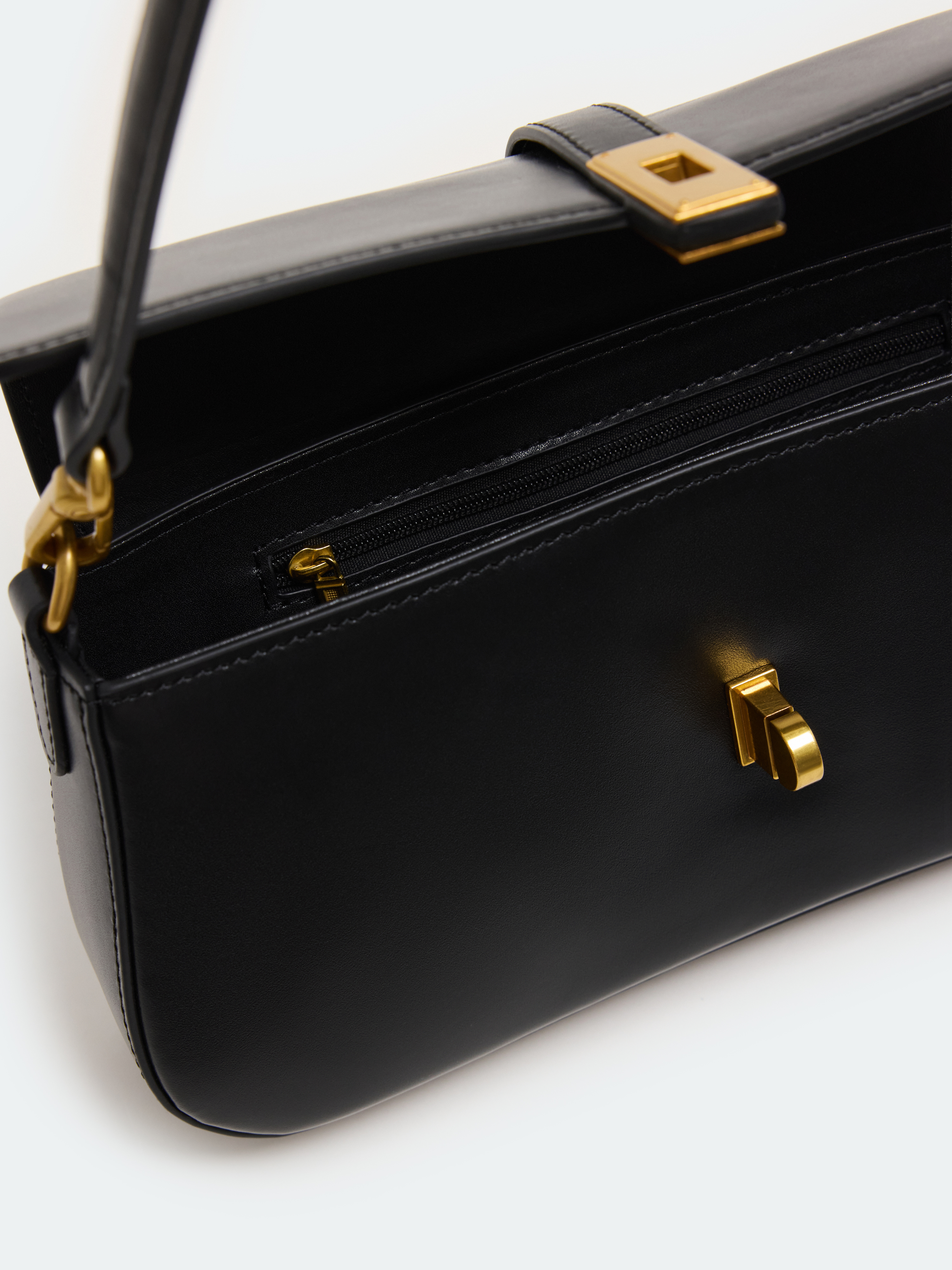 Сумка-багет уже несколько сезонов остается в трендах. Каркасную модель выполнили из гладкой натуральной кожи. Основное отделение закрывается на замок и компактно разместит внутри кошелек и смартфон. Изделие можно носить в двух вариантах: на длинном ремне или в руке. Лаконичная сумка легко впишется в гардероб любого стиля.
