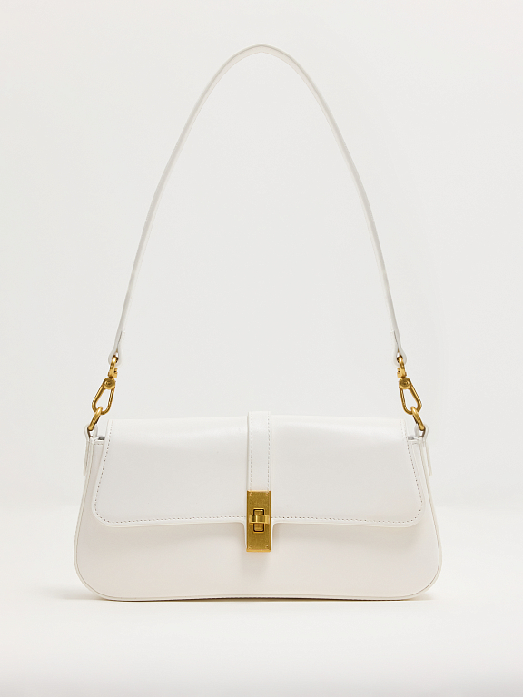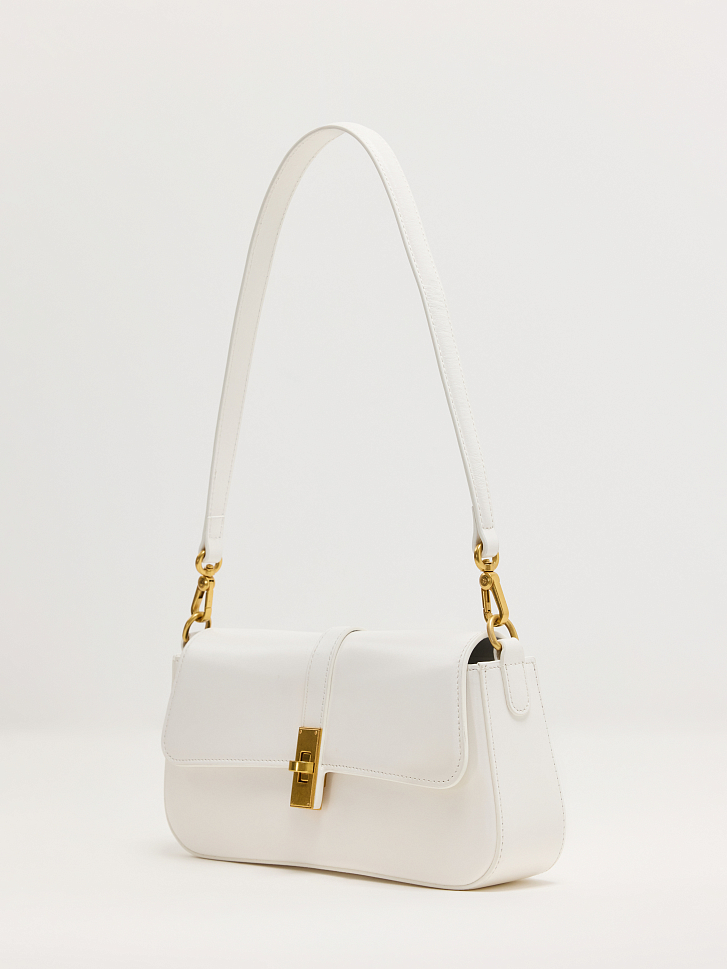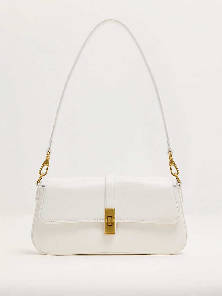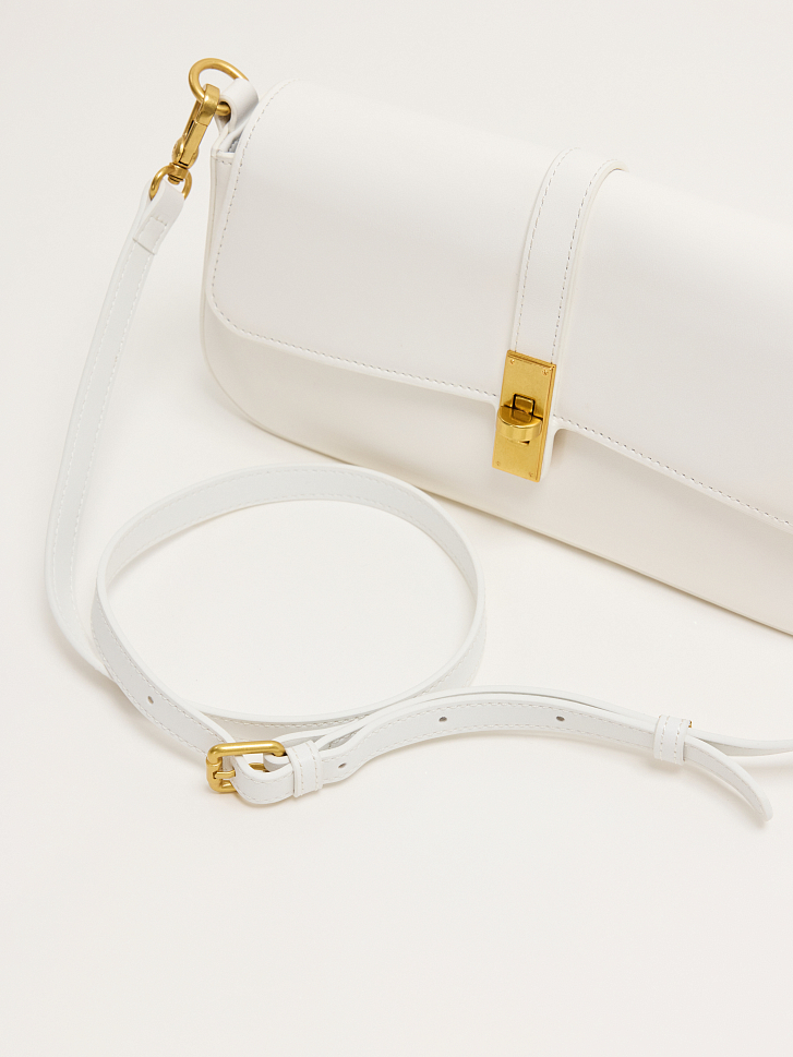 Сумка-багет уже несколько сезонов остается в трендах. Каркасную модель выполнили из гладкой натуральной кожи. Основное отделение закрывается на замок и компактно разместит внутри кошелек и смартфон. Изделие можно носить в двух вариантах: на длинном ремне или в руке. Лаконичная сумка легко впишется в гардероб любого стиля.