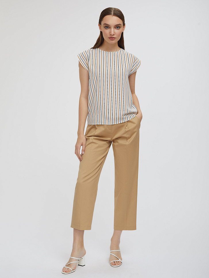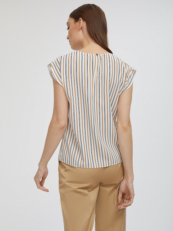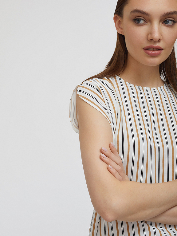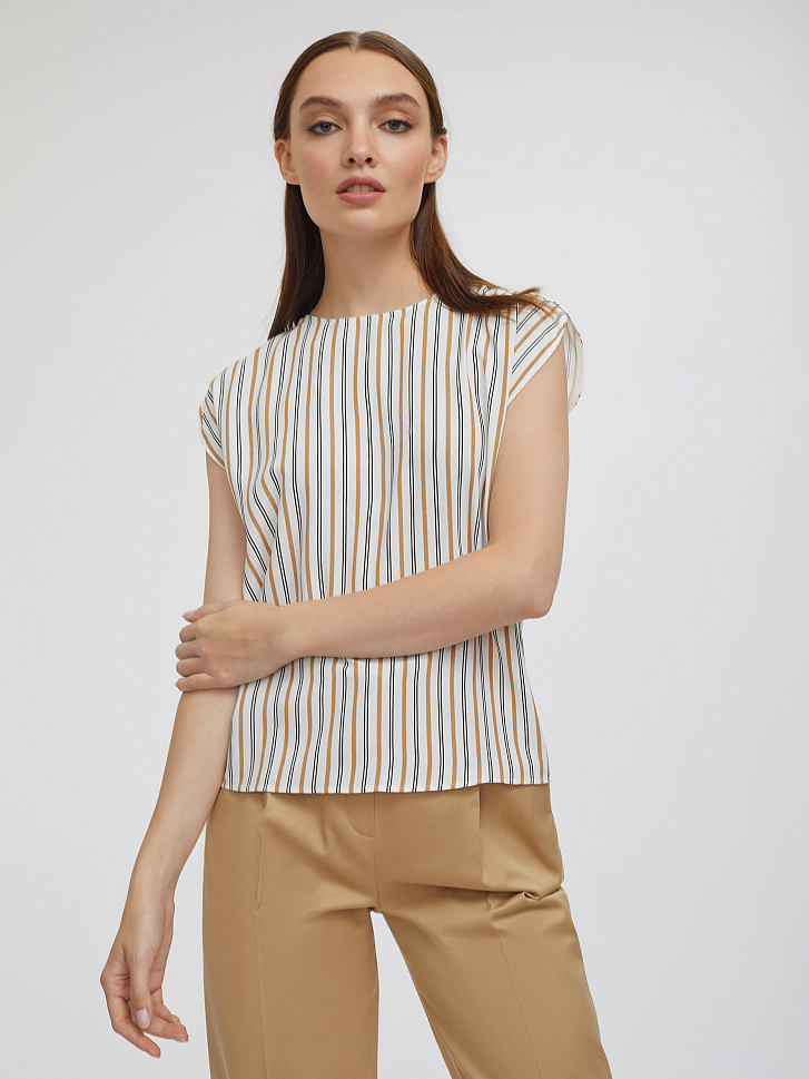 Топ из легкой ткани в полоску. Свободный силуэт, круглый вырез, рукава с разрезами.