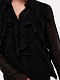 Легкая блуза с воланами создаст романтичный образ. Воздушный креп-шифон почти не ощущается на теле, а чтобы ткань не просвечивала, снизу предусмотрели текстильный топ на основе вискозы. Модель прямого кроя дополнена съемной лентой из аналогичного материала, которую можно застегнуть вокруг воротника.