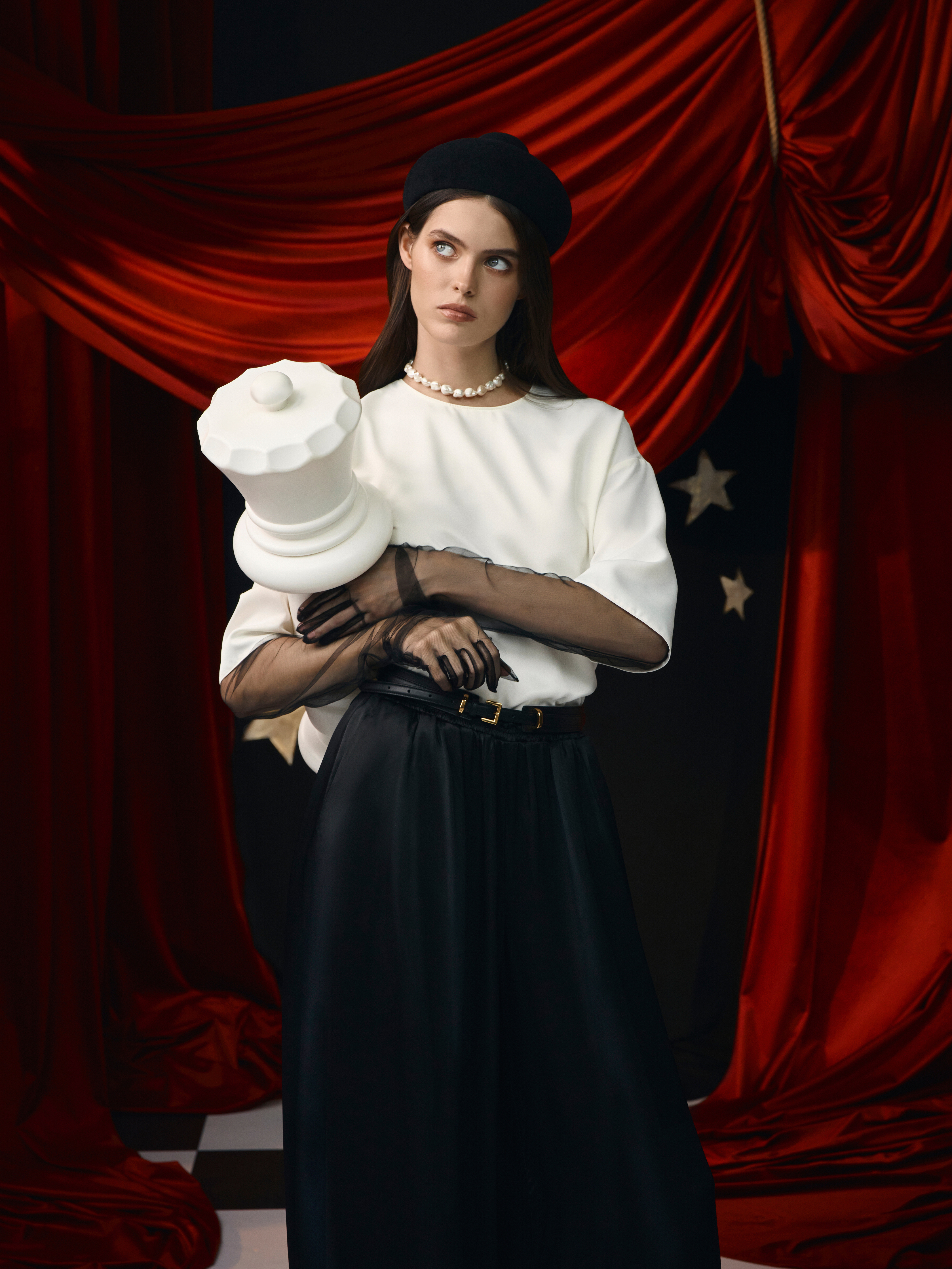 Прямая блуза с круглым вырезом и короткими рукавами сочетает удобство футболки и элегантность атласа. Плотный материал обладает шелковистым эффектом и износостойкостью, но менее прихотлив в уходе, в отличии от натурального шелка. Потайная молния и разрезы по бокам – функциональные детали.