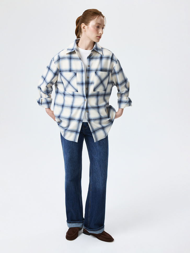 Свободная рубашка в клетку – комфортная база для повседневных образов. Плотный текстиль с содержанием вискозы напоминает на ощупь фланель, он не мнется и хорошо держит форму. Модель оверсайз расслабленно сидит по фигуре и не сковывает движения, а накладные карманы добавляют функциональности.