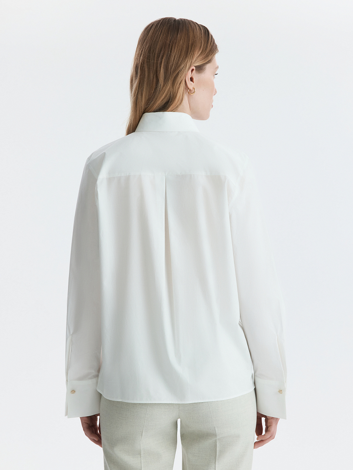 Белая классическая рубашка – база современного гардероба. Ткань из натурального хлопка хорошо пропускает воздух и комфортно прилегает к телу. Благодаря обработке EASY CARE блузу легко гладить и она меньше мнется, дольше сохраняя аккуратный внешний вид.