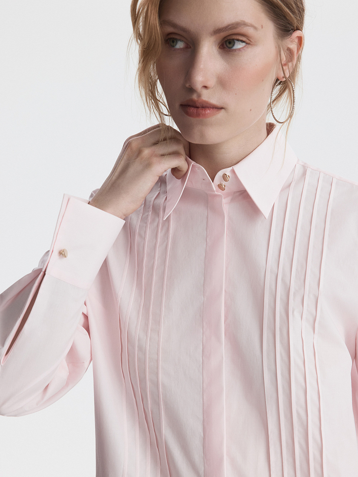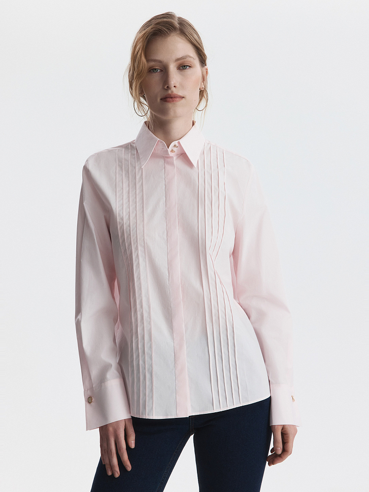 Классическая рубашка – база современного гардероба. Ткань из натурального хлопка хорошо пропускает воздух и комфортно прилегает к телу. Благодаря обработке EASY CARE блузу легко гладить и она меньше мнется, дольше сохраняя аккуратный внешний вид.