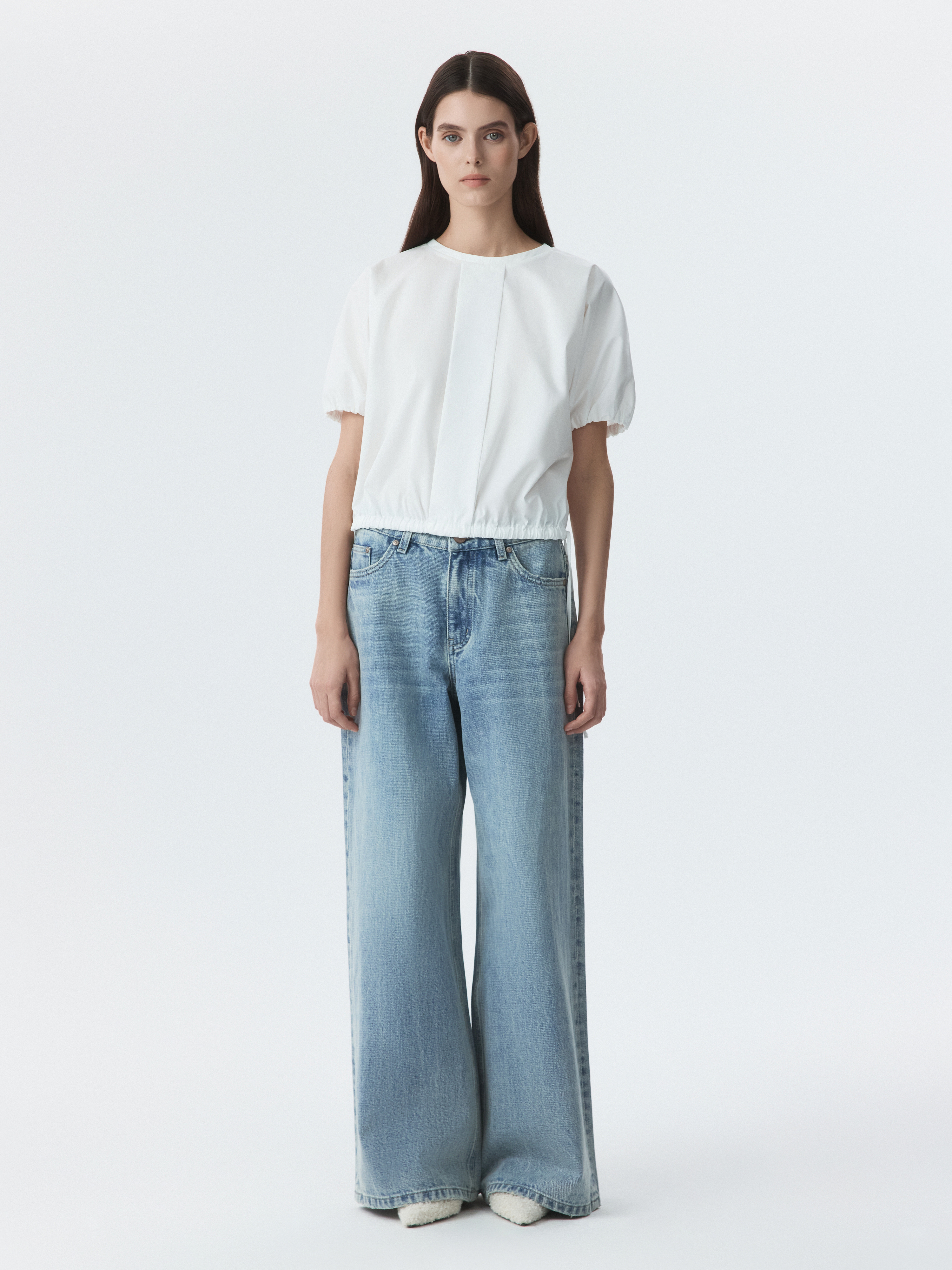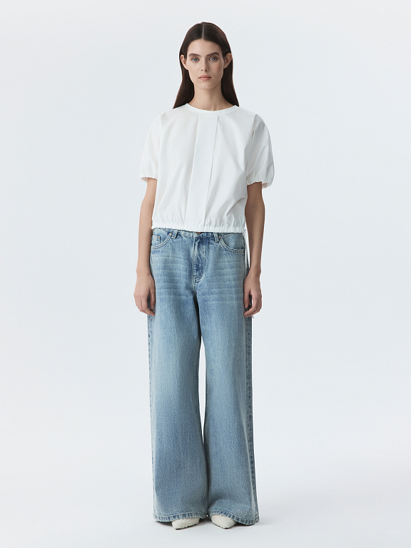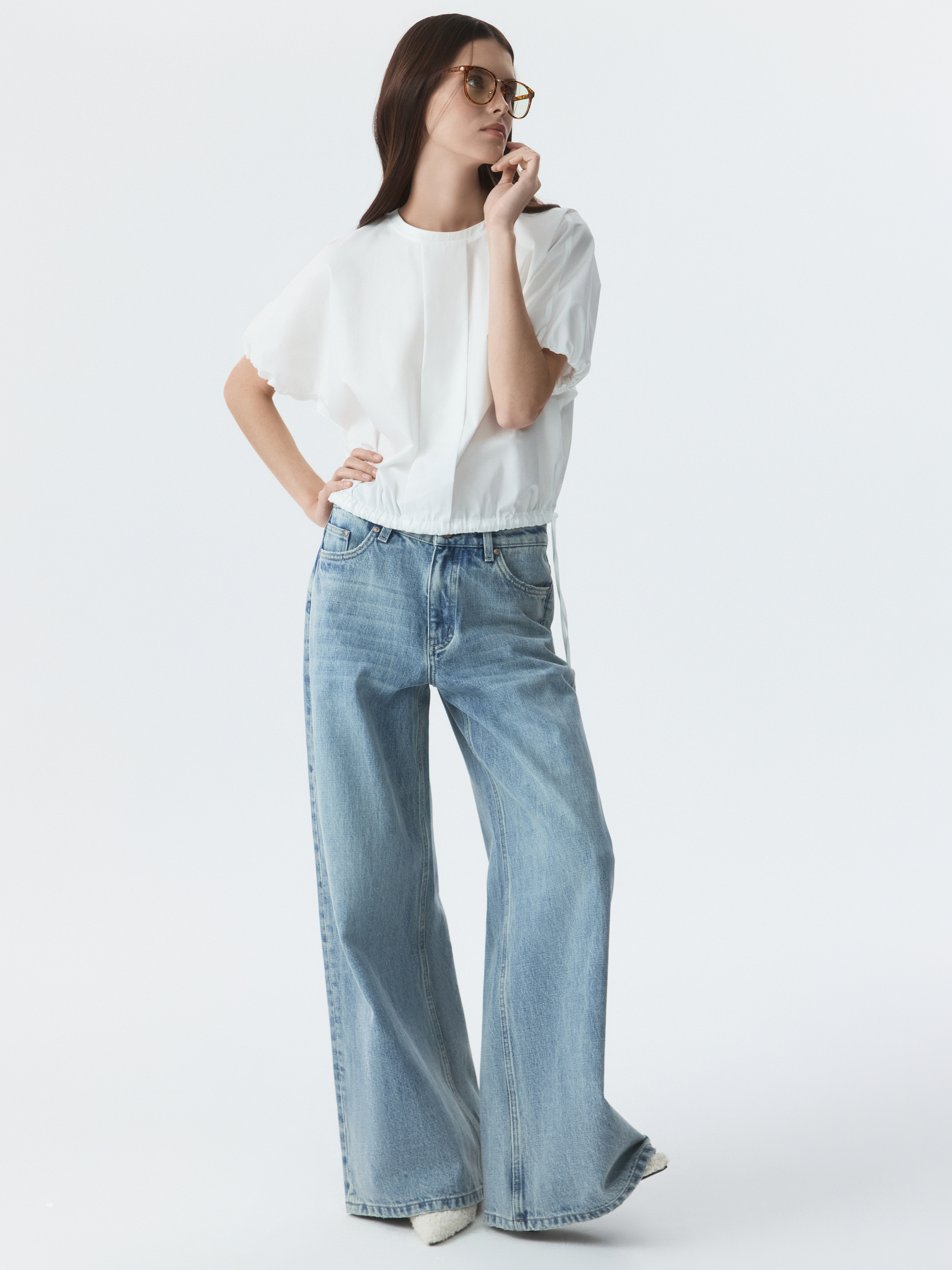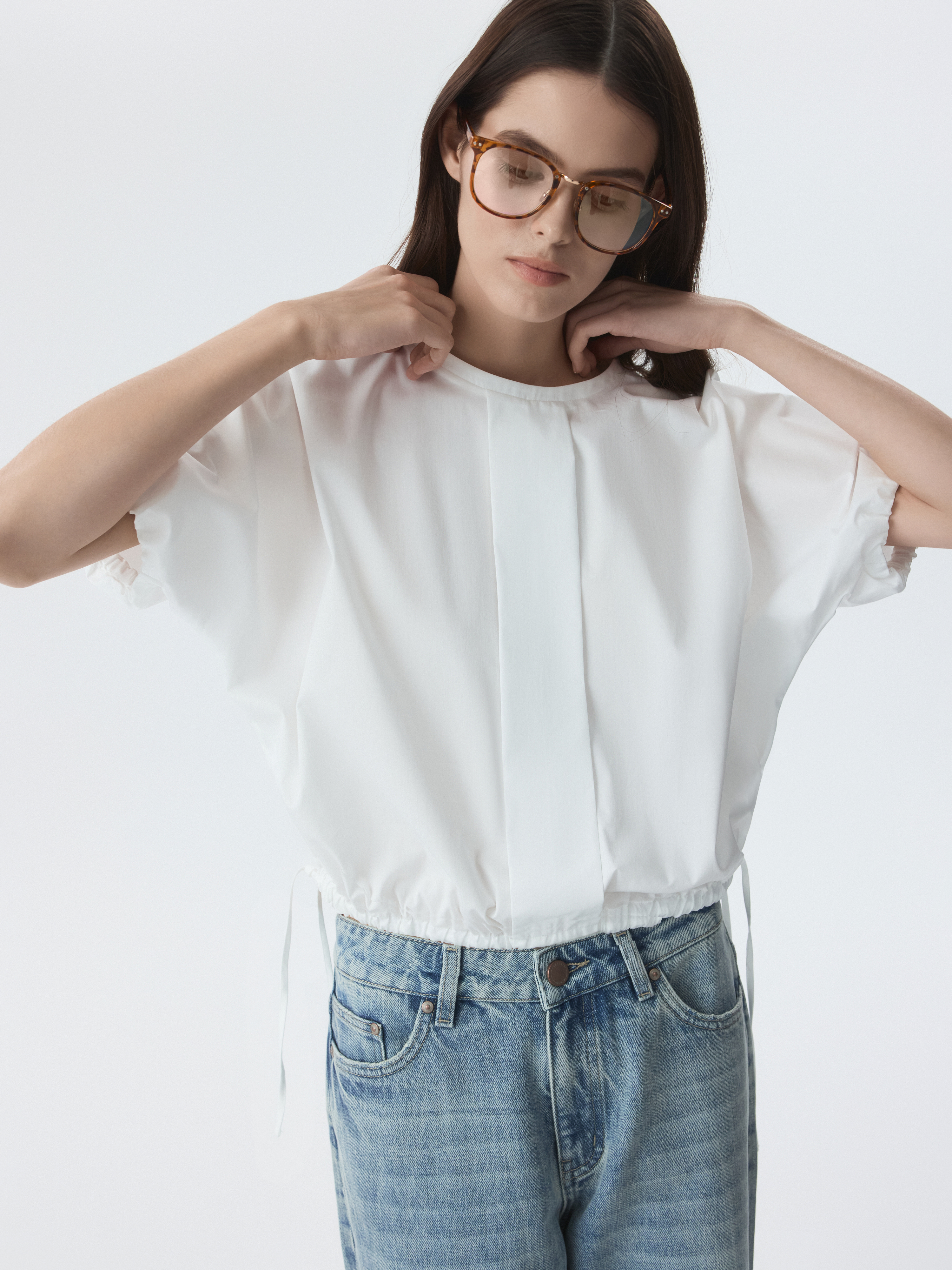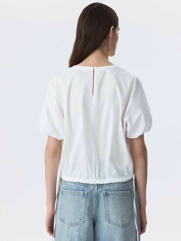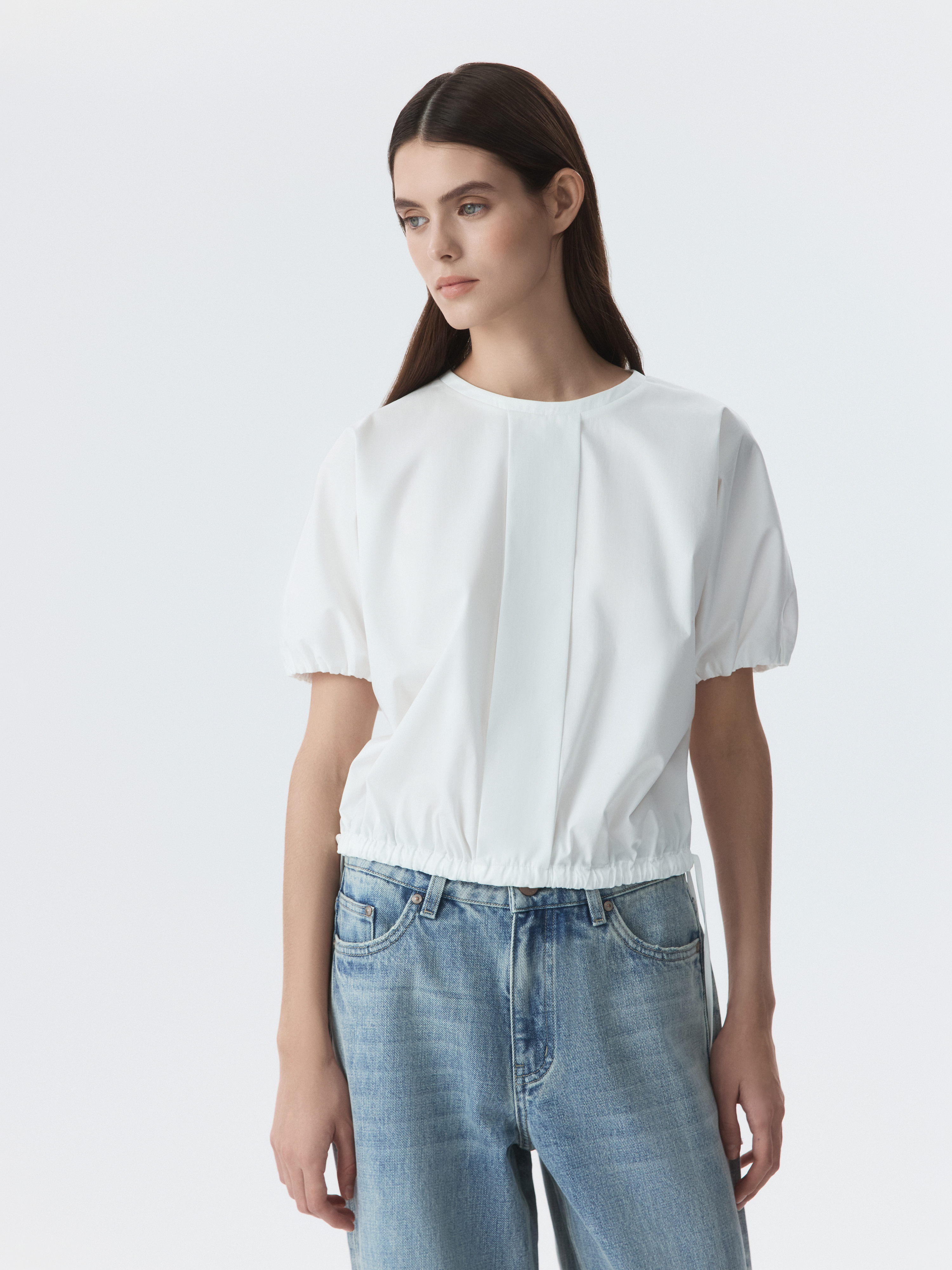 Блуза с рукавами-фонариками и кулиской сочетает лаконичный силуэт и женственные детали. Тонкий текстиль на основе натурального хлопка обладает прекрасными дышащими свойствами и обеспечивает комфорт на протяжении всего дня, а волокна нейлона придают износоустойчивости.