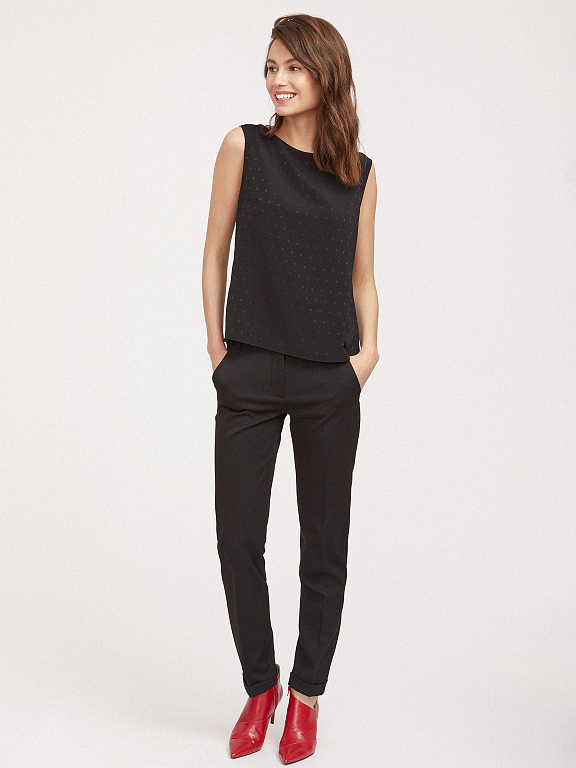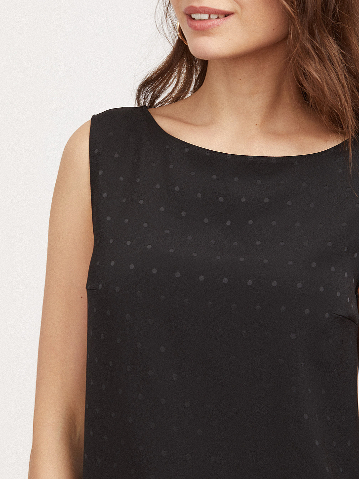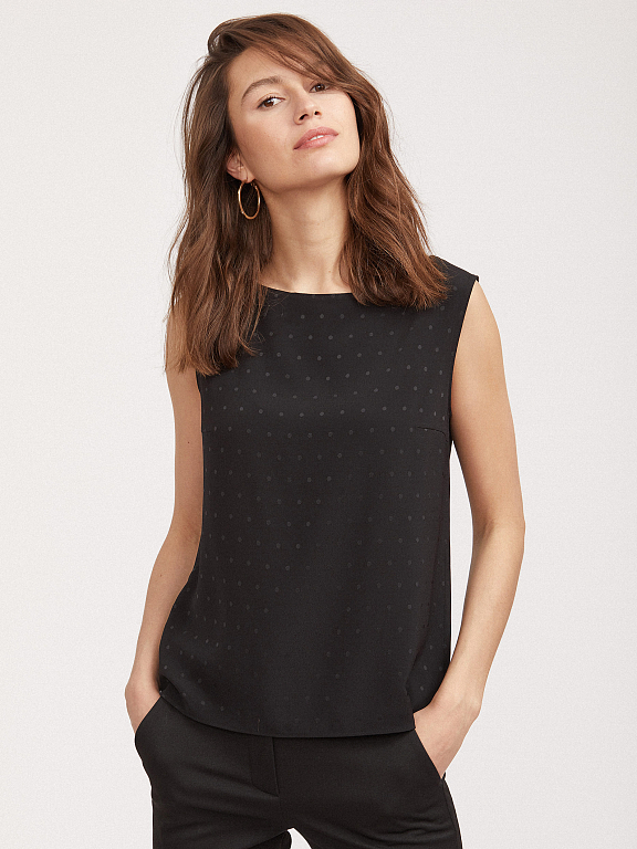 Топ свободного силуэта, выполненный из смесовой вискозы. Округлый вырез, принт в цвет основной ткани.