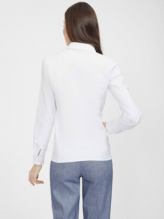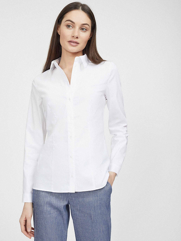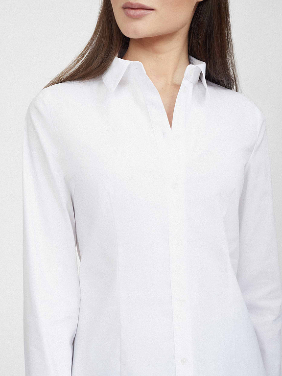 Однотонная рубашка из хлопка. Приталенный крой, классический отложной воротник, длинные рукава с манжетами на пуговицах.