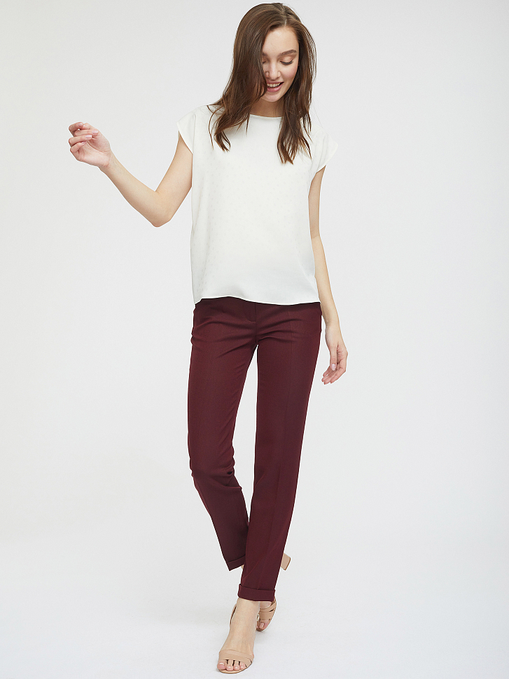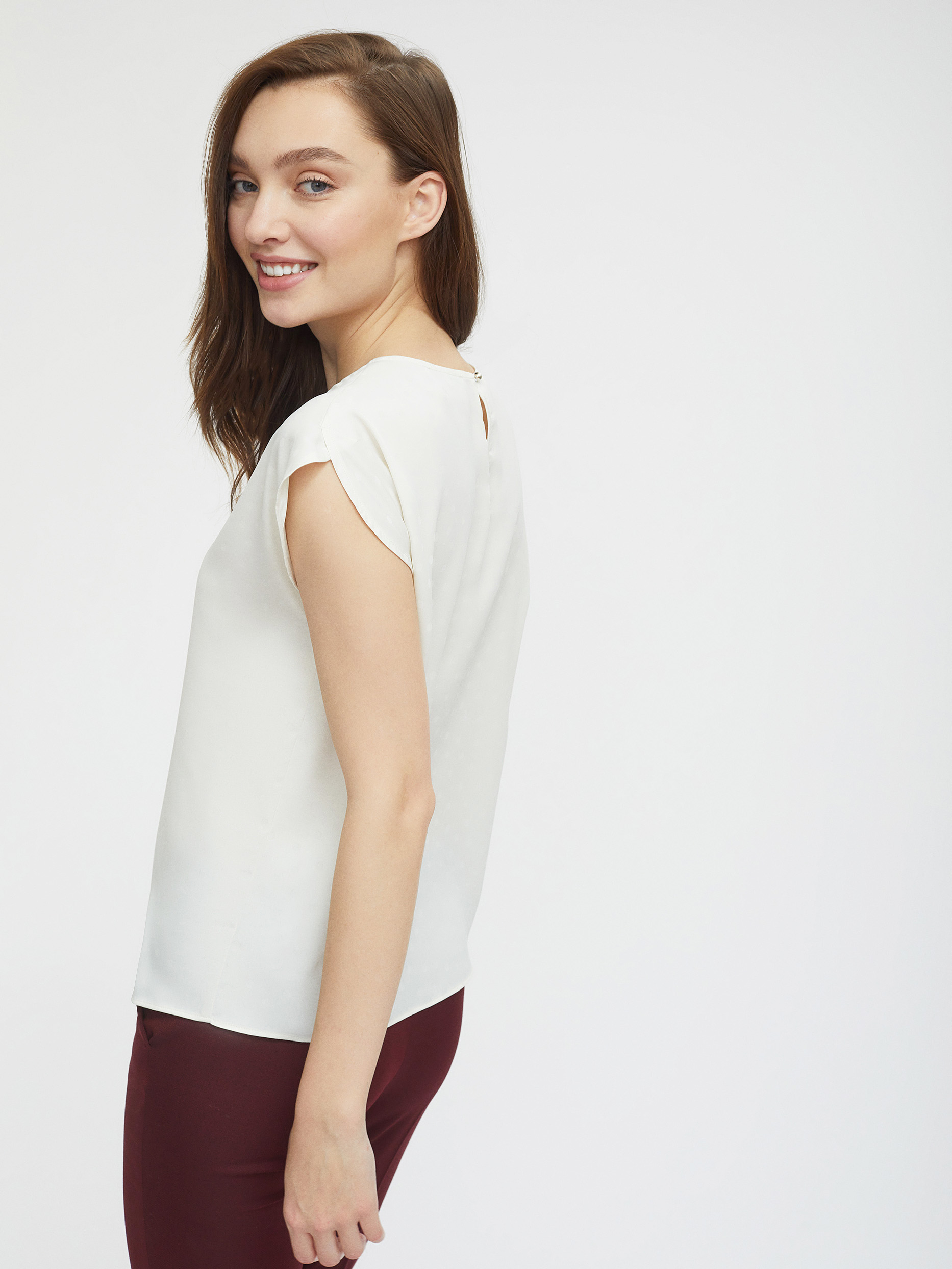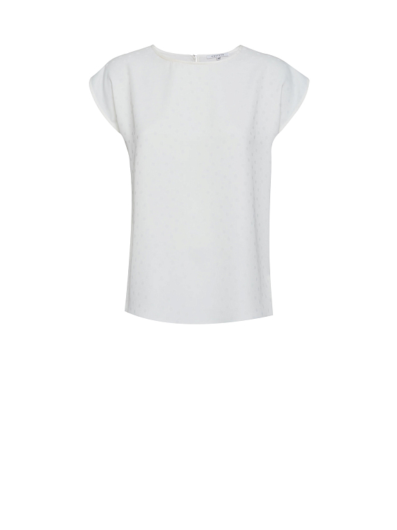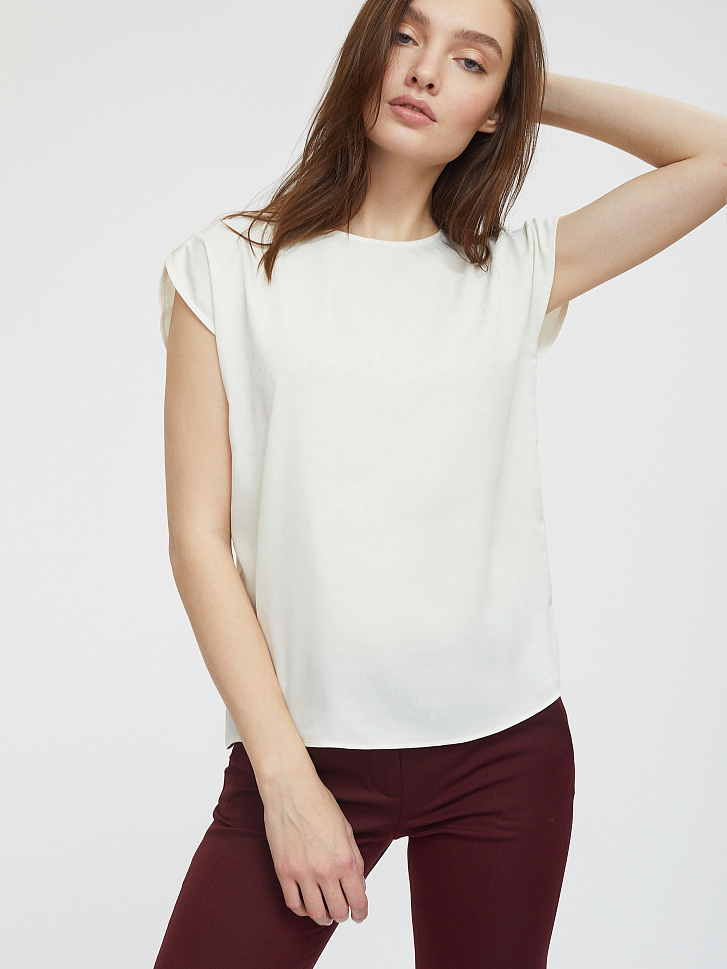 Блуза свободного кроя из атласной ткани. Округлый вырез, короткие рукава, принт.