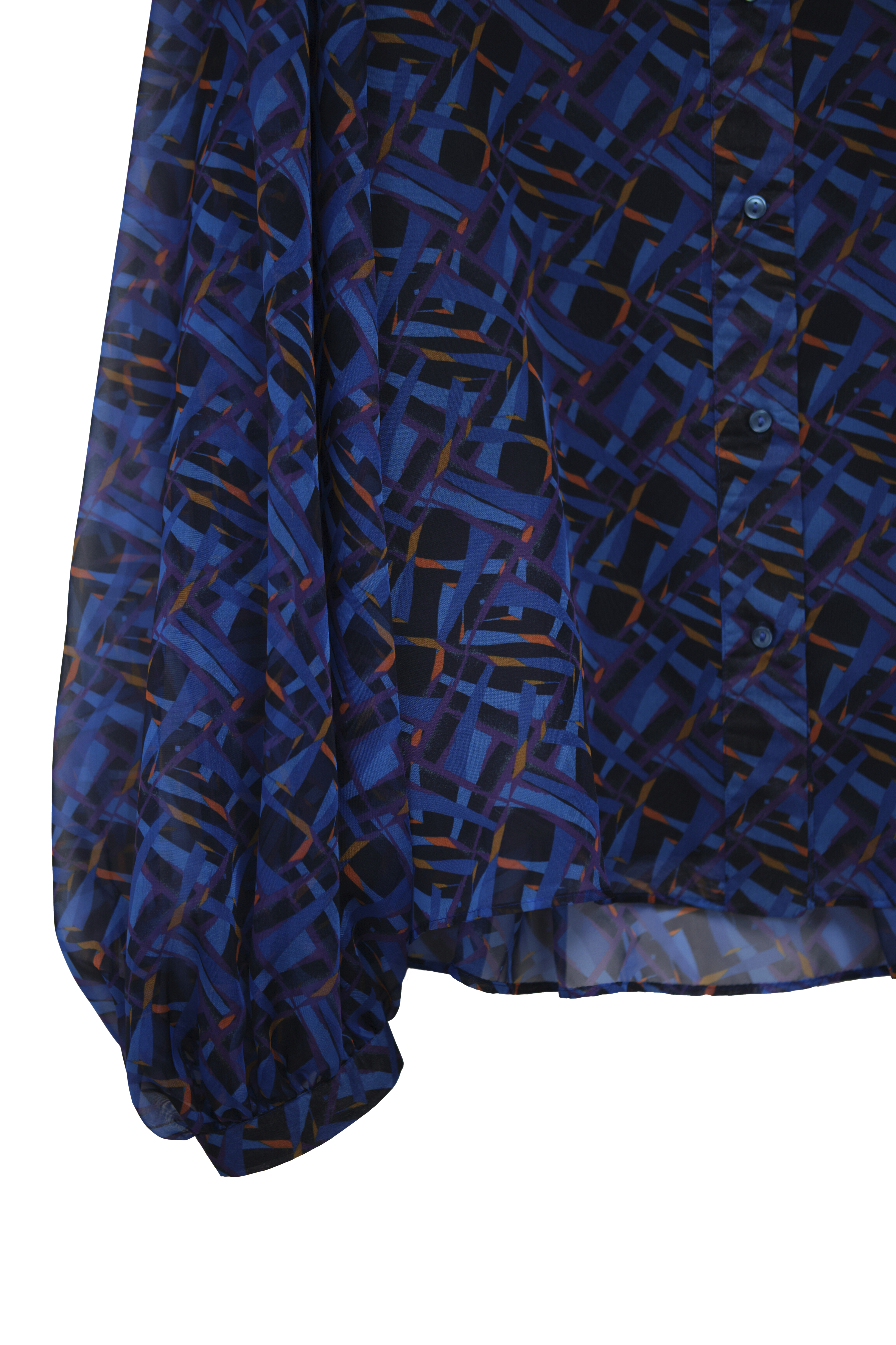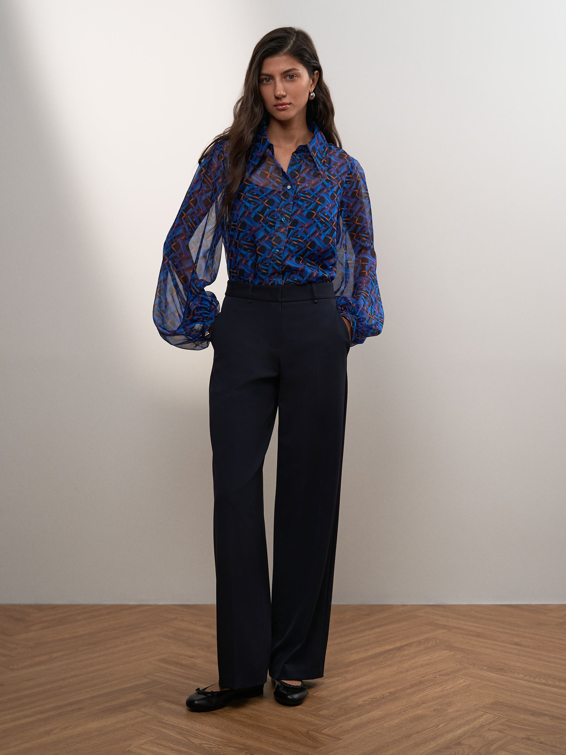 Блуза с объемными рукавами придаст романтичности любому повседневному образу. Полупрозрачный материал и оригинальный принт делают прямую блузу центральным акцентом образа, вне зависимости от того, сочетать ее с джинсами или юбкой. Чтобы блуза не просвечивала, снизу предусмотрели топ из мягкой вискозы.