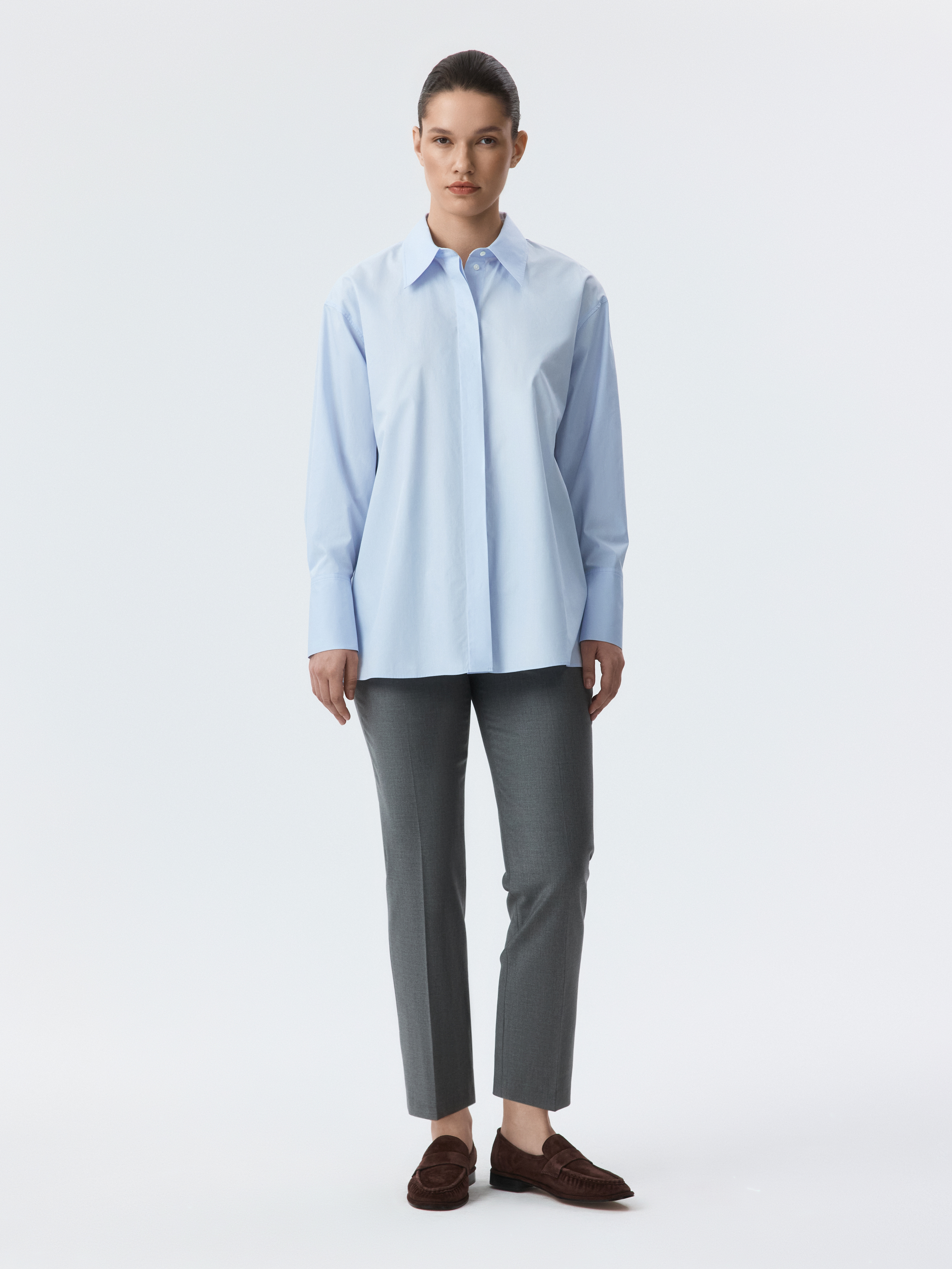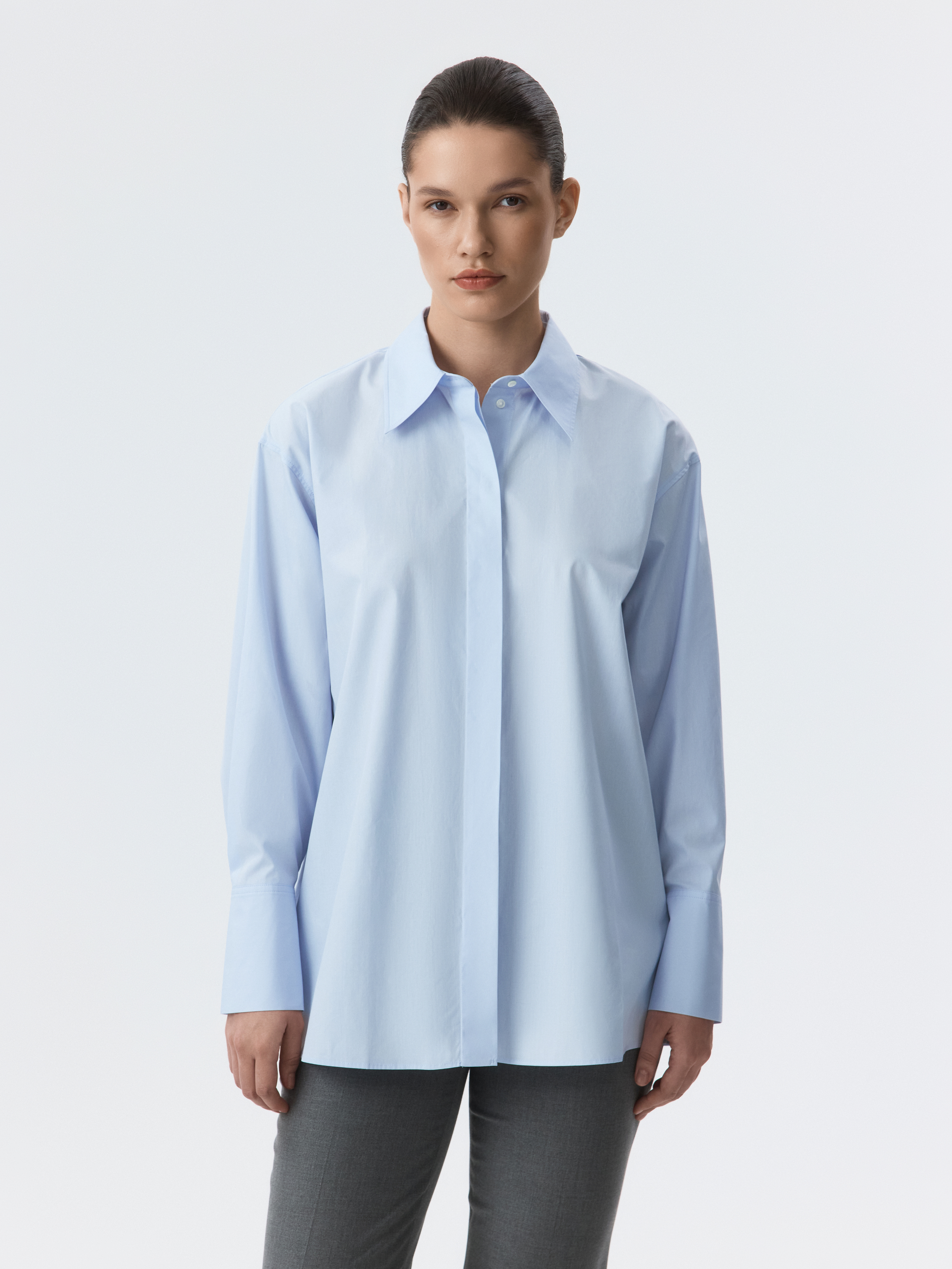 Легкая и универсальная, эта рубашка из поплина просто необходима в повседневном гардеробе. Свободный крой и натуральная дышащая ткань создают комфорт даже в жаркие дни. Комбинируйте хлопковую блузу с юбкой-карандаш для офисного дресс-кода или с джинсами для повседневных луков.