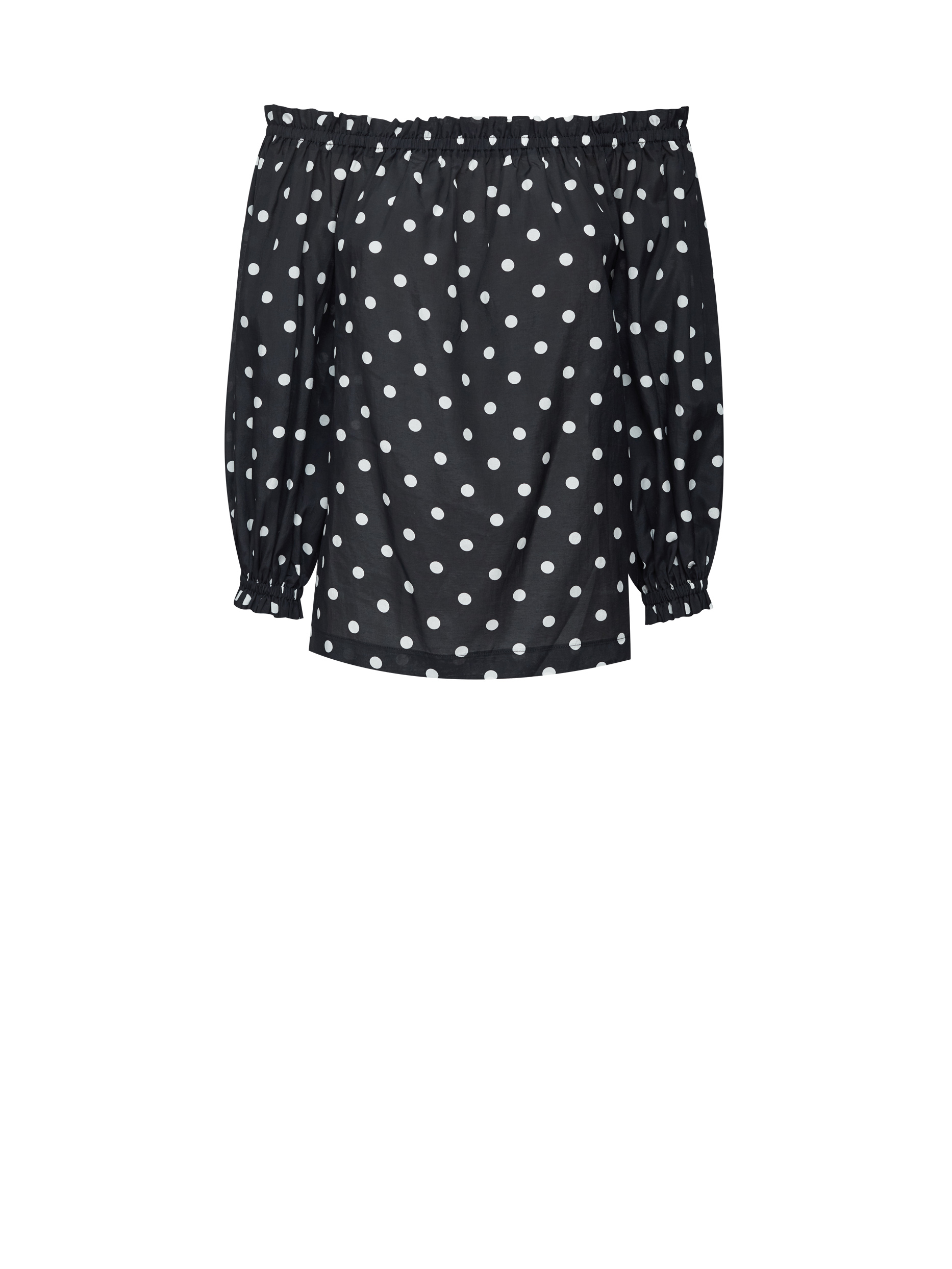 Блуза свободного кроя из смесового хлопка со спущенными плечами и объемными рукавами на эластичных манжетах.