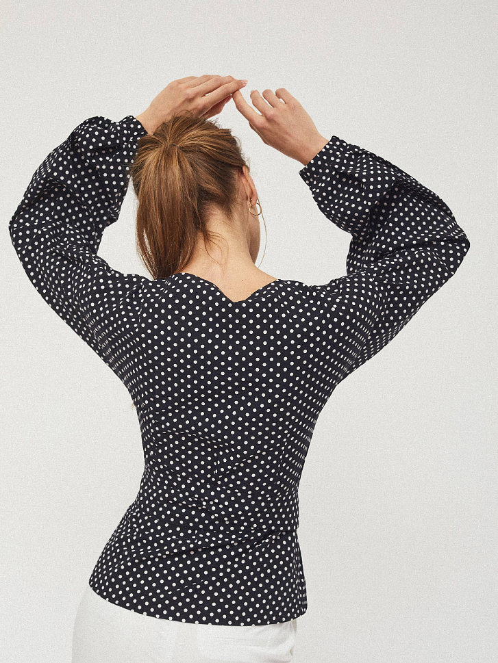 Блуза на запах, выполненная из 100% хлопка, с поясом из этой же ткани. Объемные рукава, спущенная линия плеч.