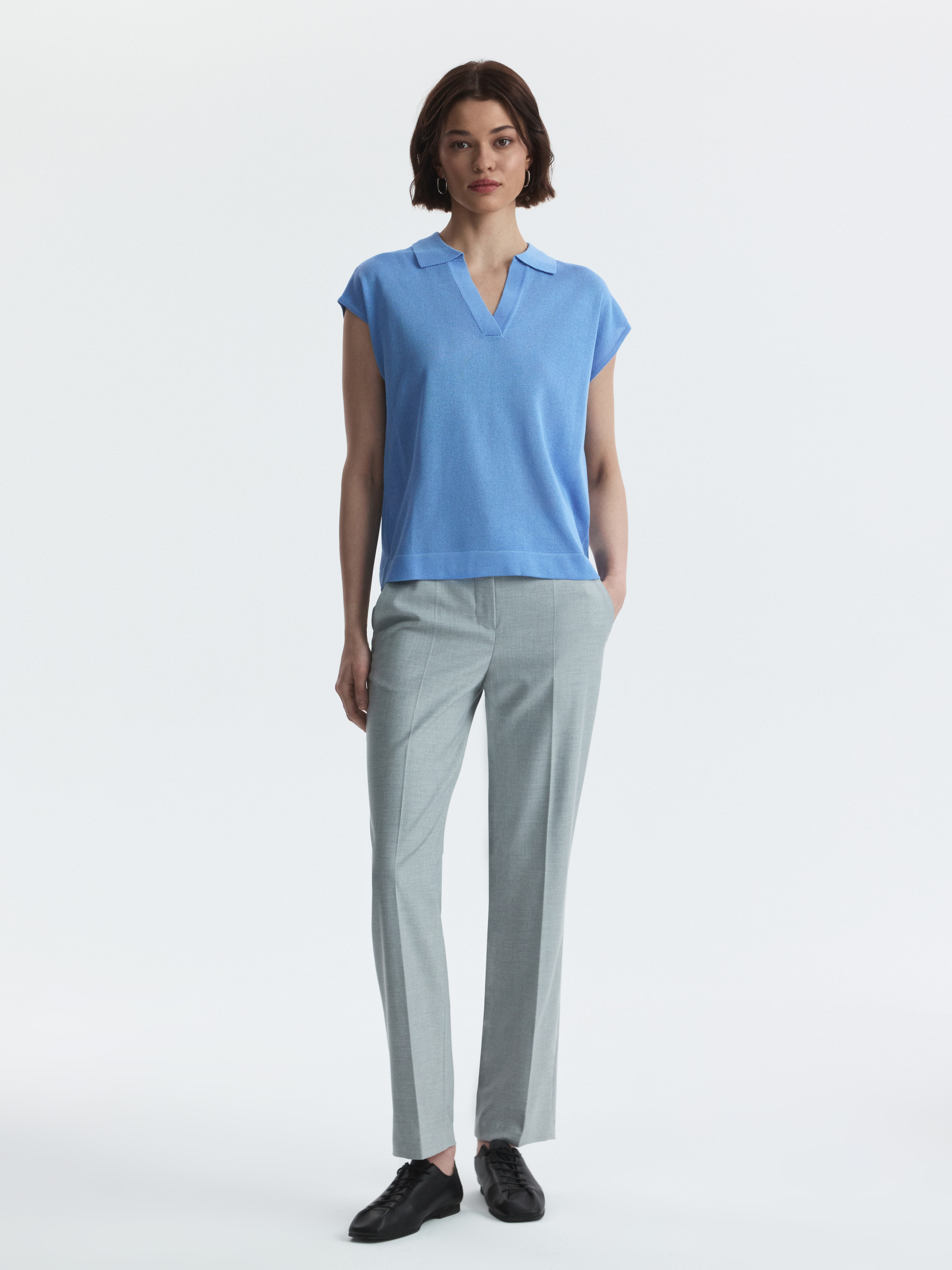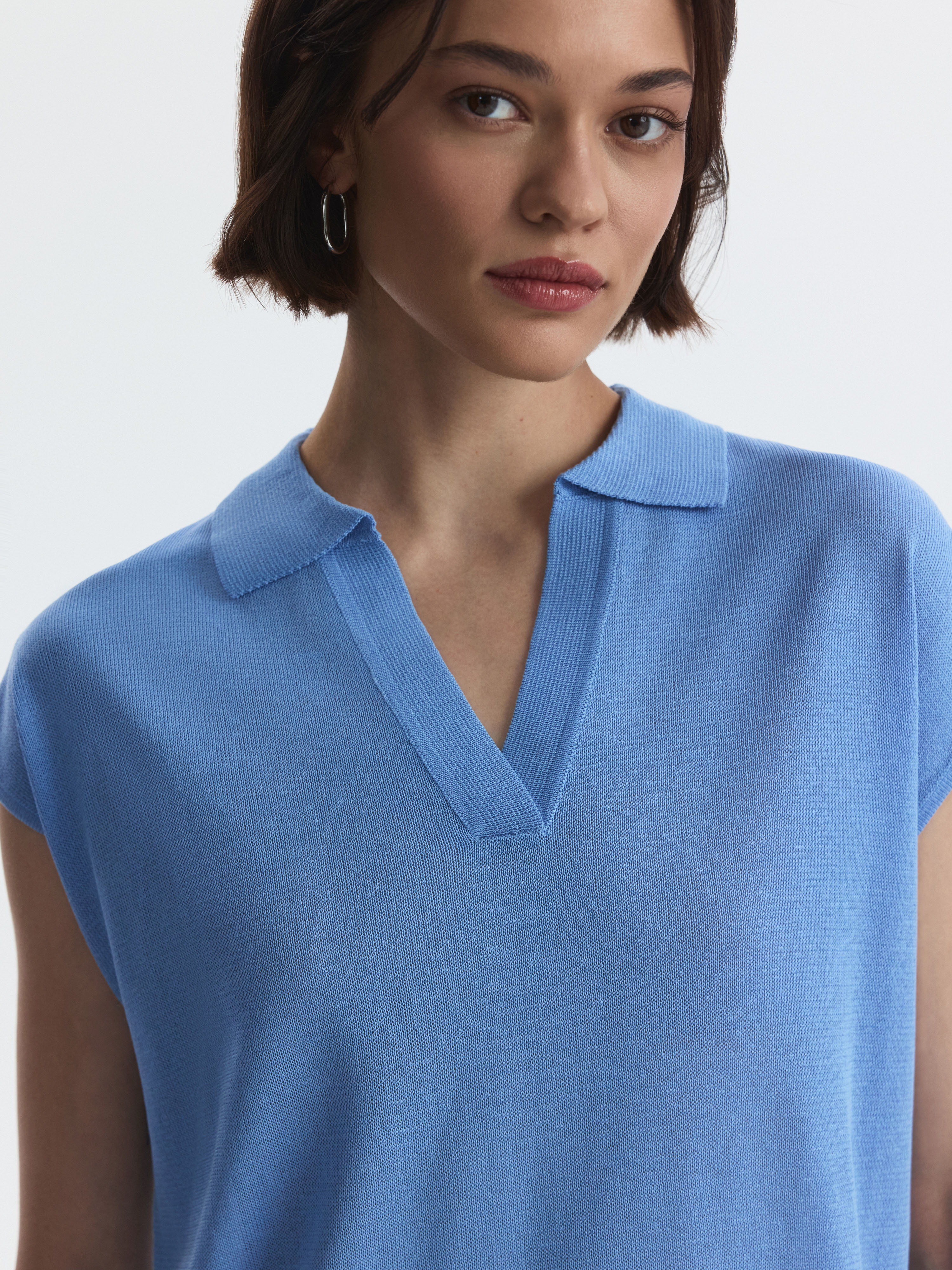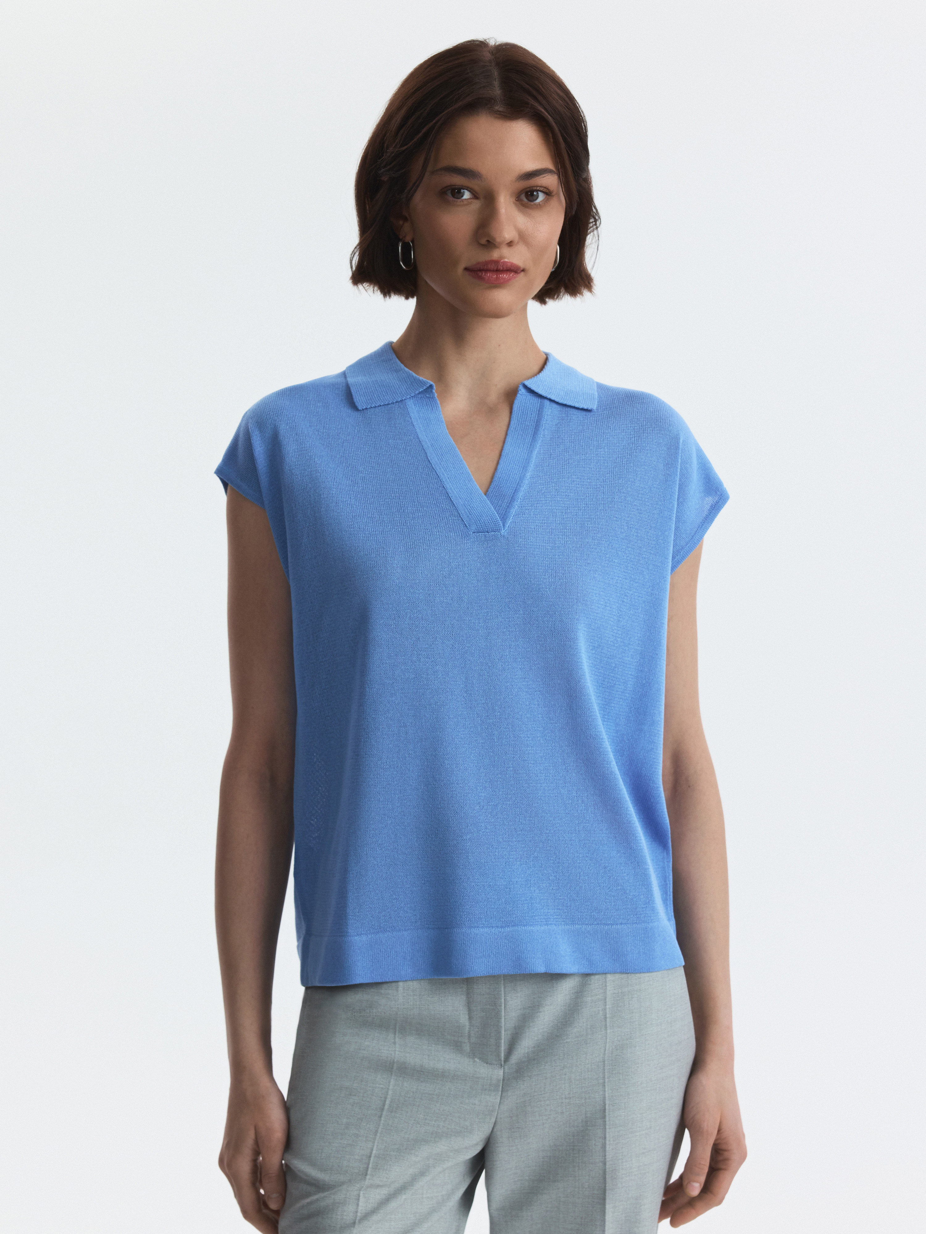 Поло с короткими рукавами – универсальный летний вариант, который прекрасно сочетается с джинсами или шортами. Тонкий трикотаж на основе вискозы мягко прилегает и обеспечивает комфорт, а волокна экошелка делают его гладким и приятным на ощупь.