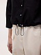 Укороченная рубашка с рукавами 3/4 превосходно сочетается как с офисными юбками, так и с повседневными джинсами: строгий тон задают отложной воротник и накладные карманы, а кулиска снизу придает расслабленности. Тонкий поплин из натурального хлопка хорошо пропускает воздух, поэтому в такой рубашке будет комфортно в жару.