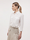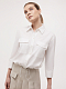 Укороченная рубашка с рукавами 3/4 превосходно сочетается как с офисными юбками, так и с повседневными джинсами: строгий тон задают отложной воротник и накладные карманы, а кулиска снизу придает расслабленности. Тонкий поплин из натурального хлопка хорошо пропускает воздух, поэтому в такой рубашке будет комфортно в жару.