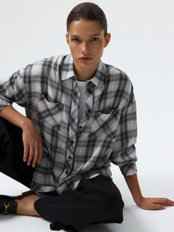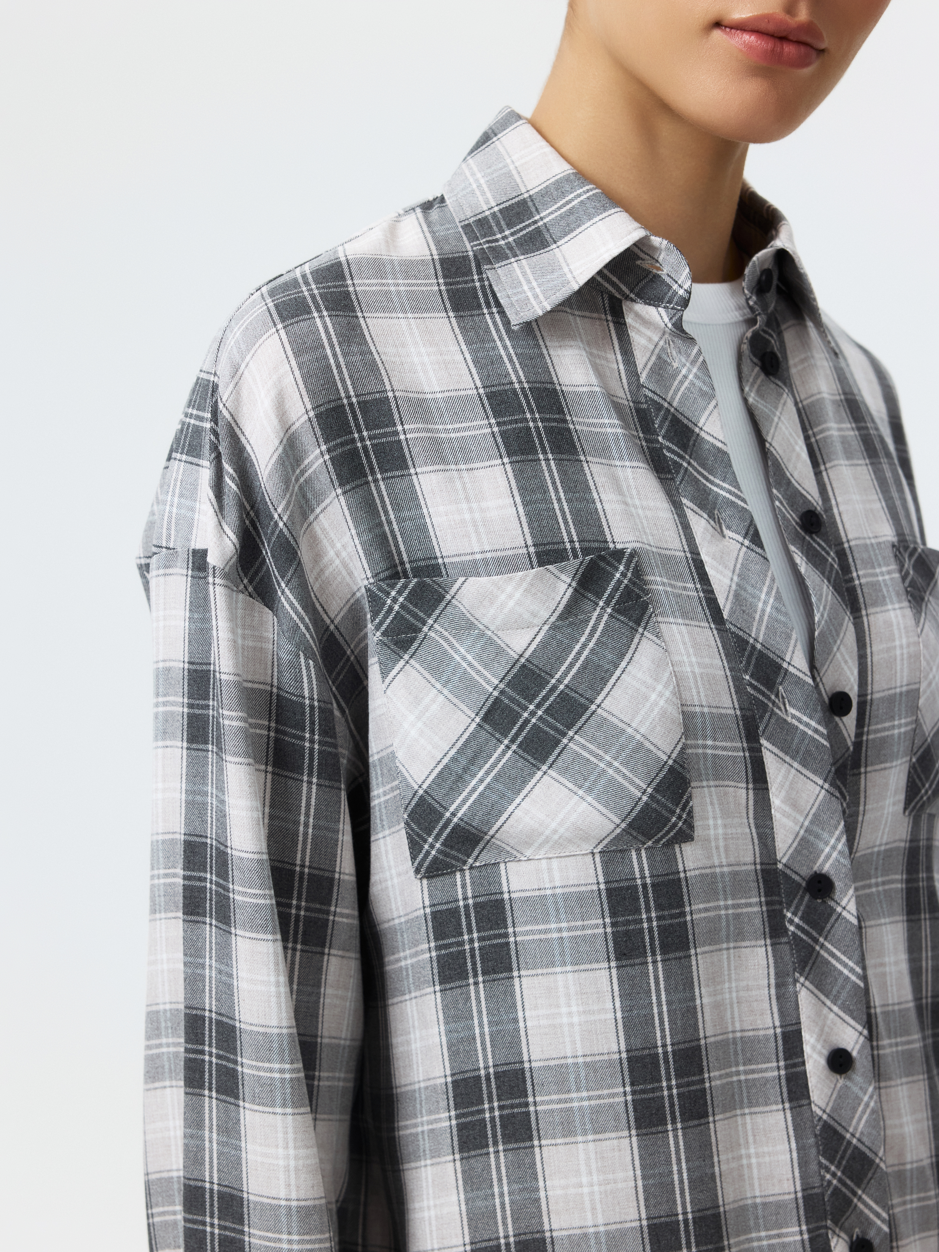 Рубашка с длинными рукавами легко адаптируется к любому поводу: офисным будням, городским прогулкам или неспешным выходным. Легкая вискоза мягко прилегает к телу и дарит комфорт на весь день. Модель свободного кроя расслабленно сидит по фигуре и не сковывает движения.