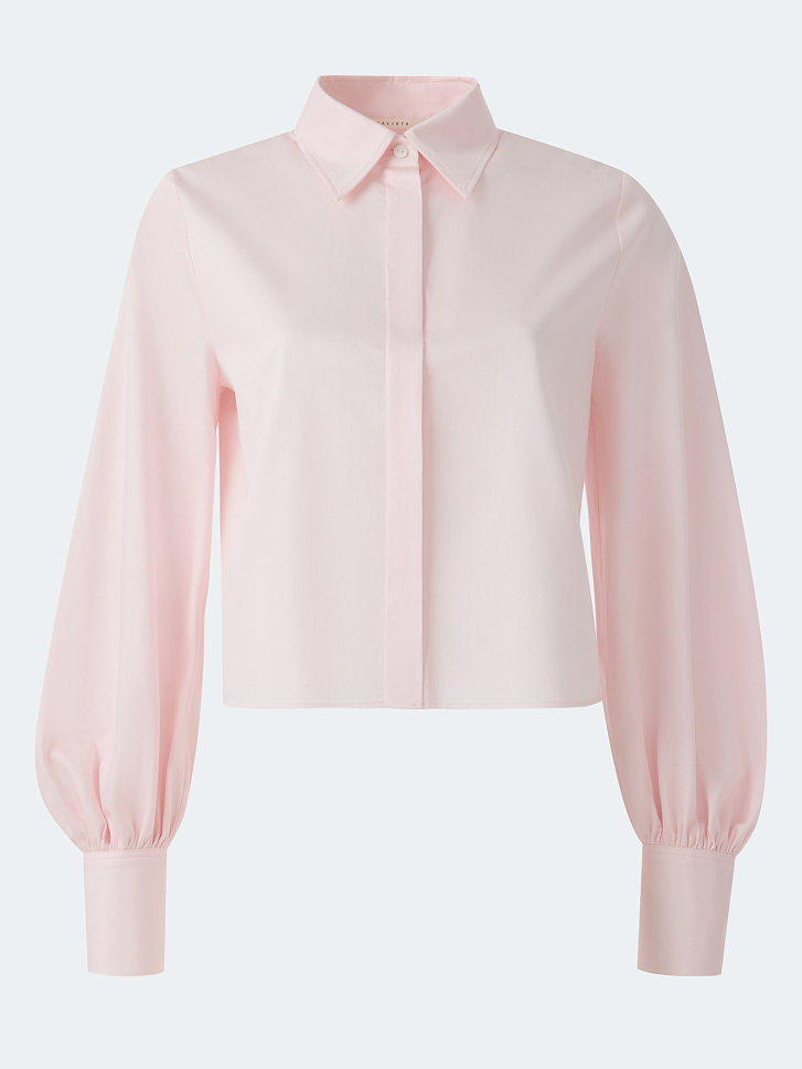 Укороченная рубашка с пышными рукавами – женственная интерпретация строгой классики. Хлопковый текстиль с шелковистой на ощупь фактурой приятно прилегает к телу и хорошо пропускает воздух, обеспечивая комфорт в течении дня. Сочетайте изделие с брюками и юбками на высокой посадке.