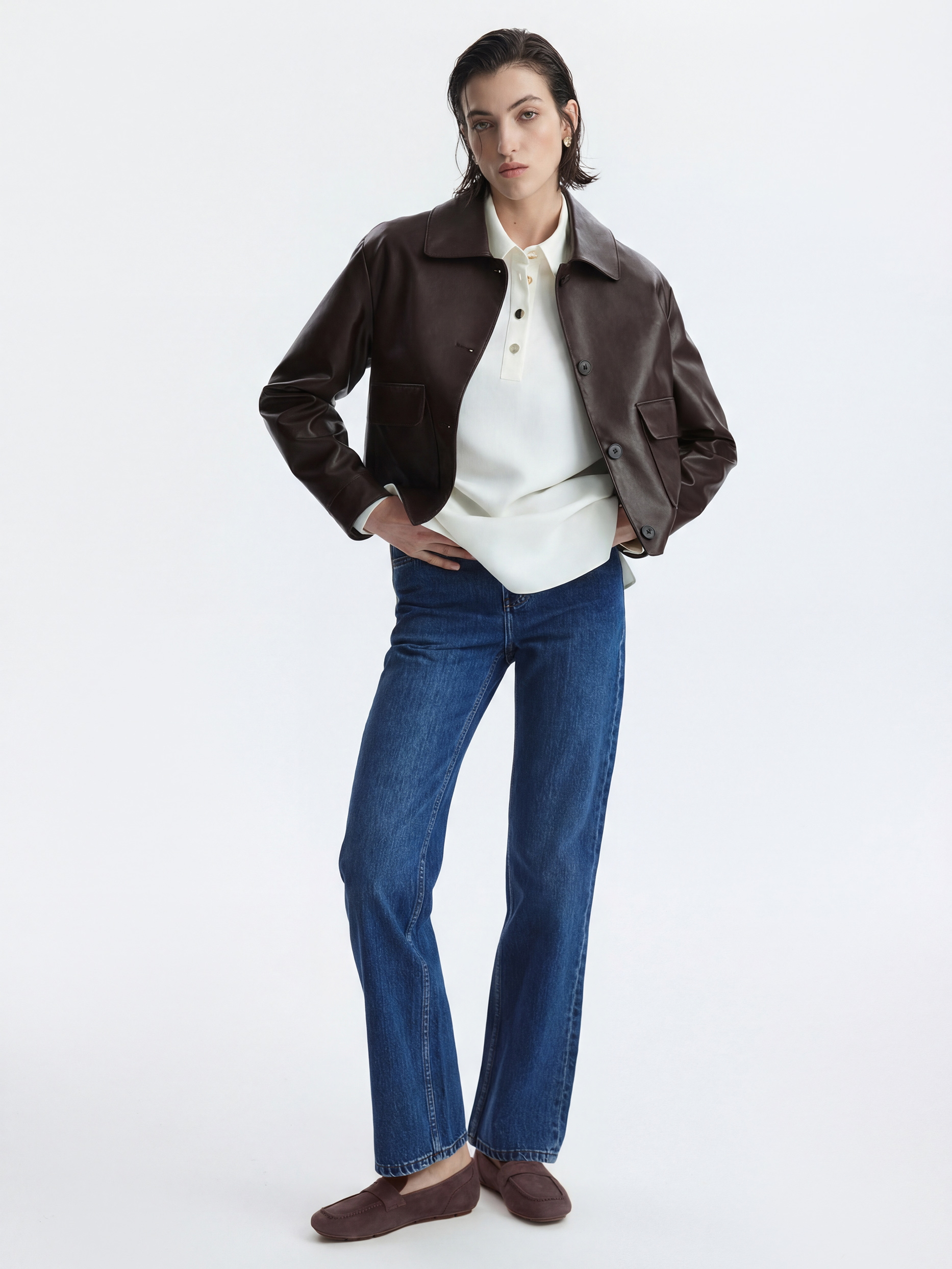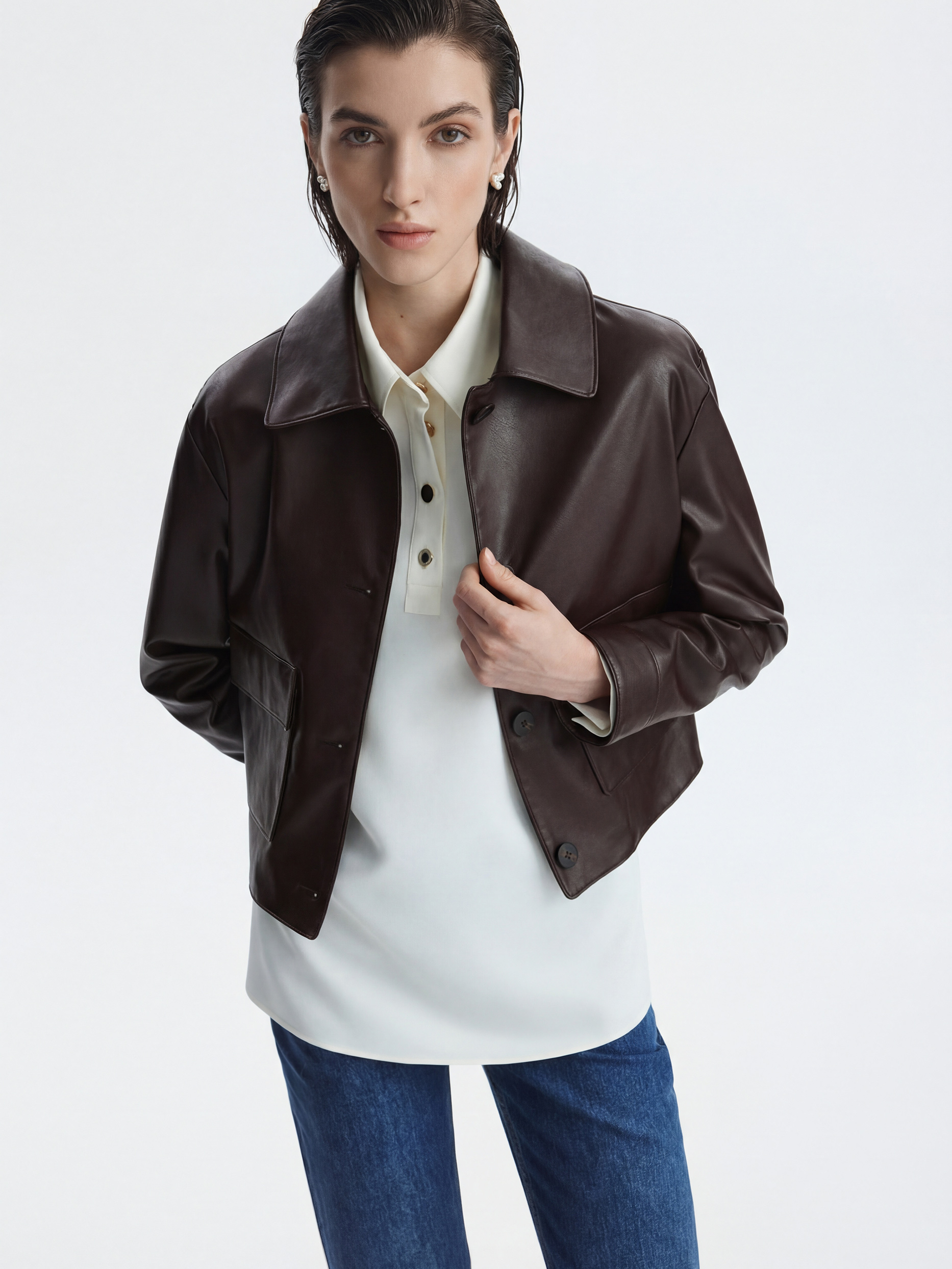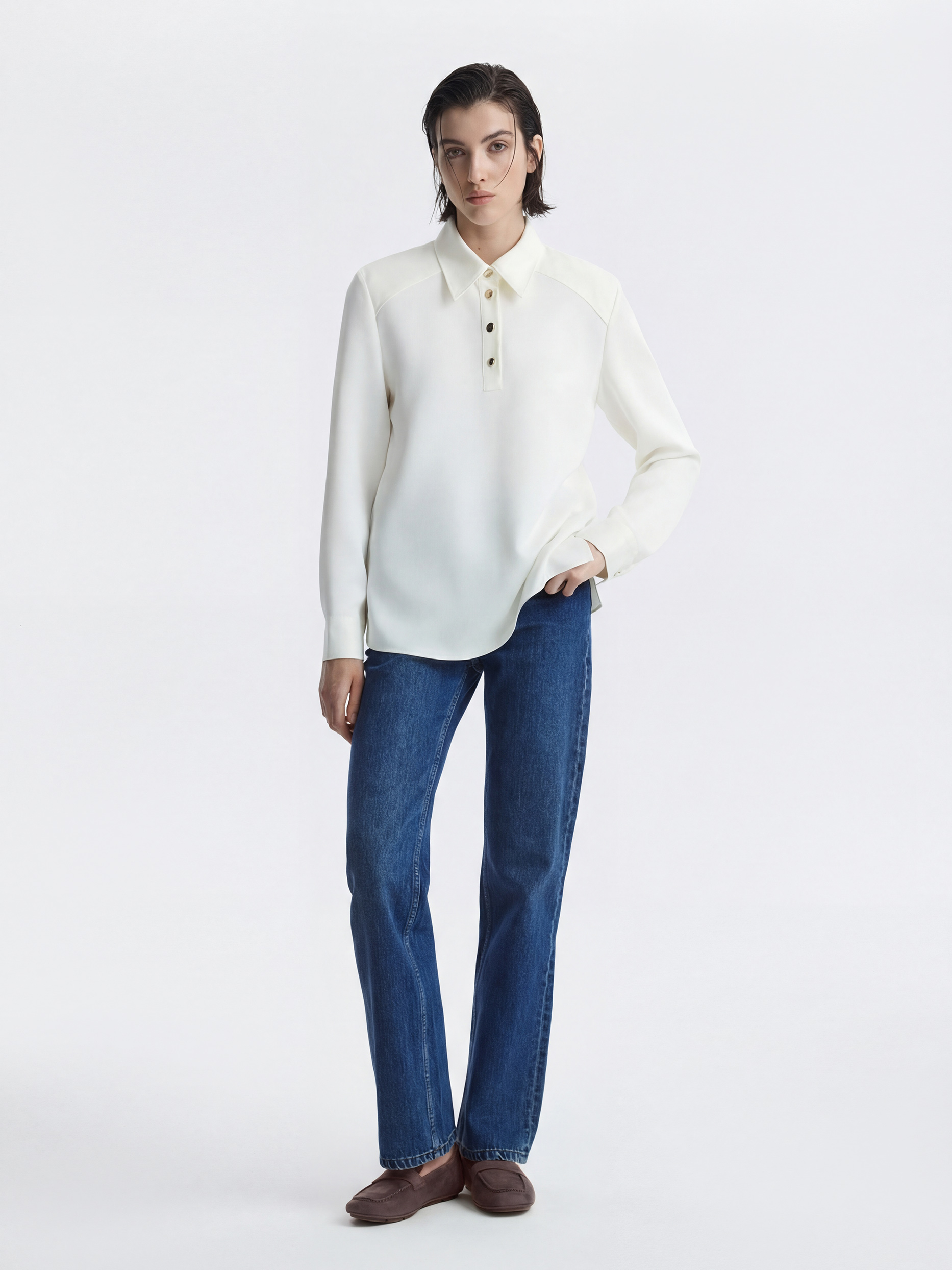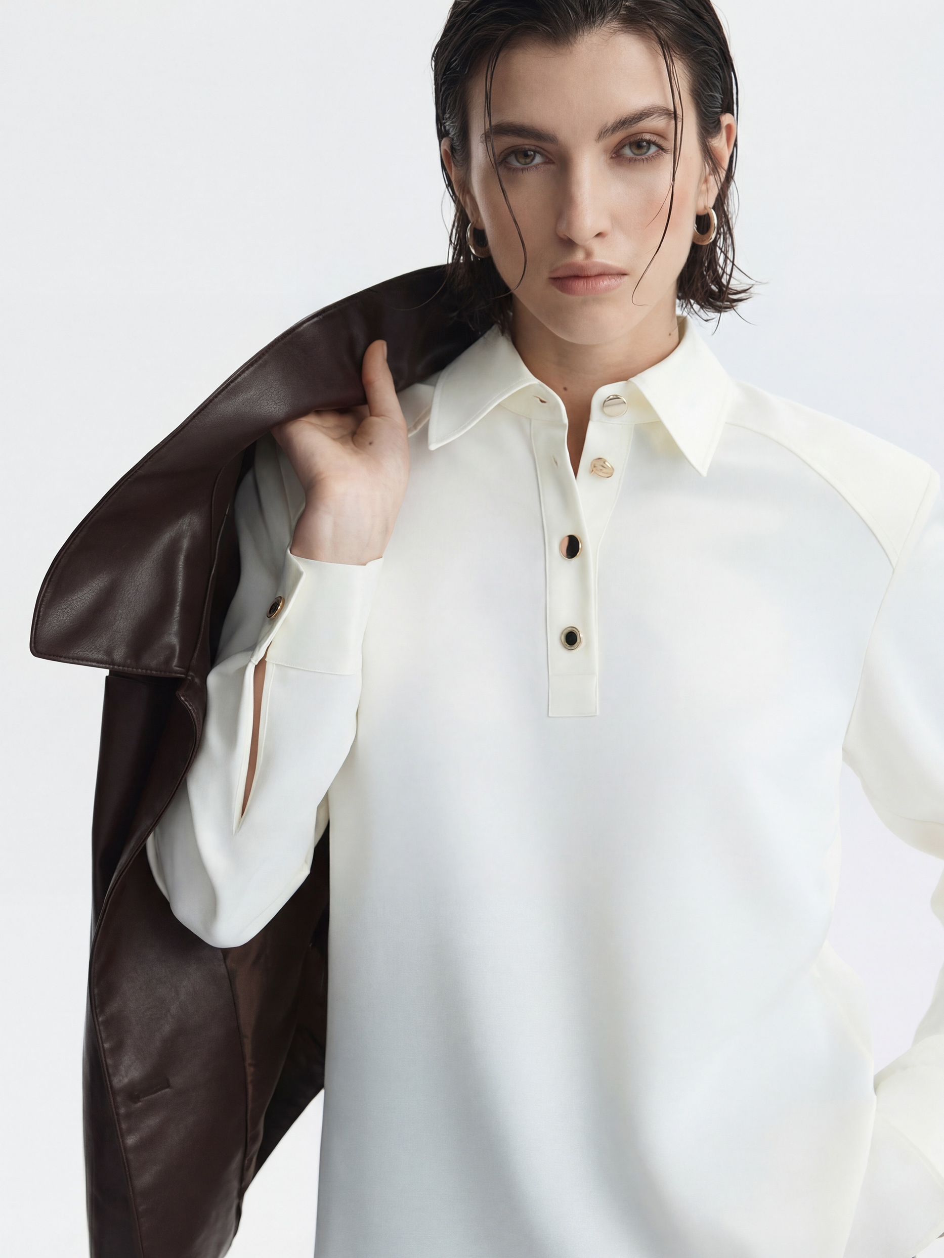 • Отложной воротник с планкой на пуговицах