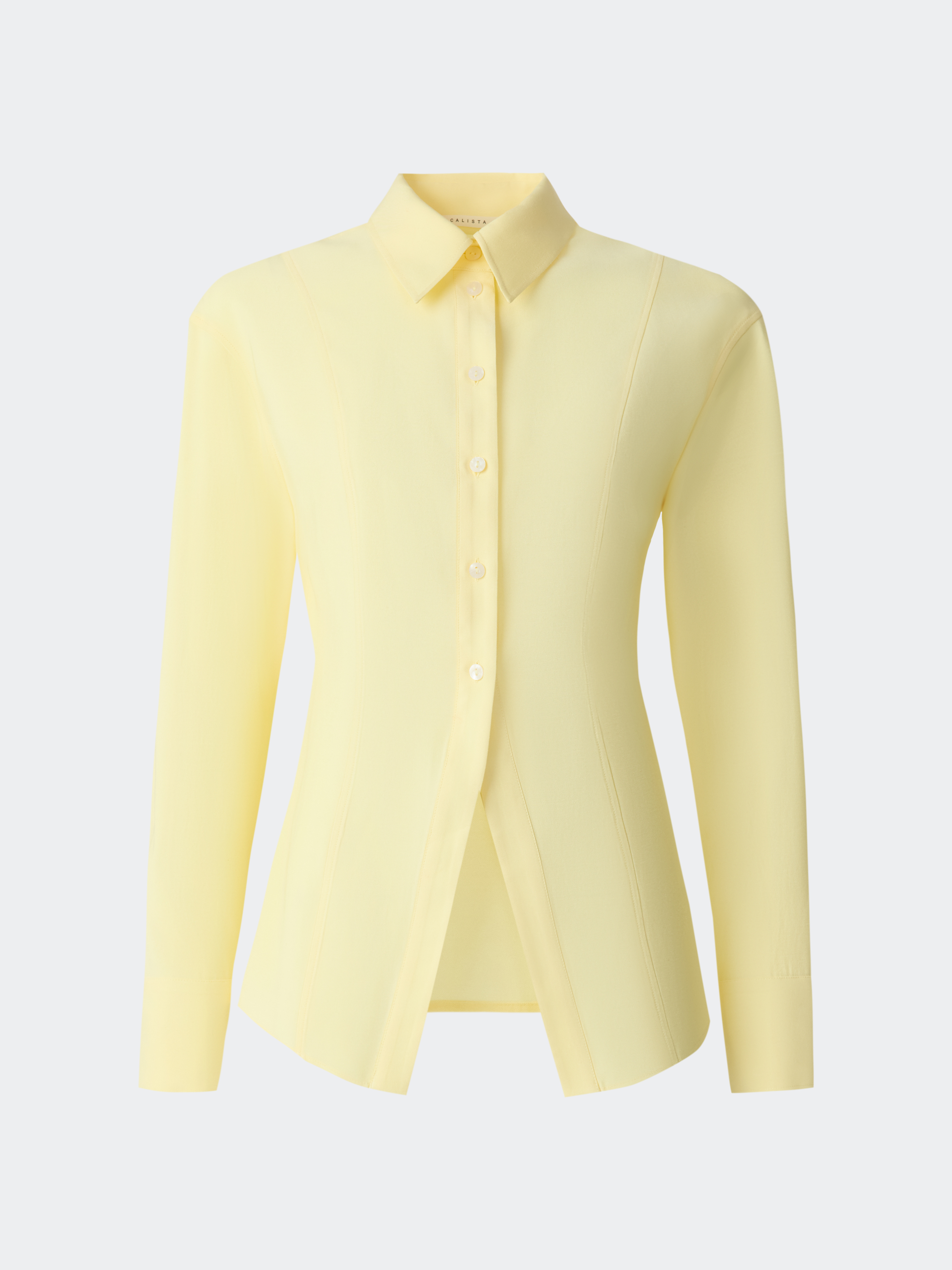 Приталенная блуза имеет графичный силуэт, а рельефные швы подчеркивают точность кроя. В меру плотный текстиль на основе вискозы с габардиновой фактурой дарит комфорт и не просвечивает. Разрез спереди создает ненавязчивый акцент.