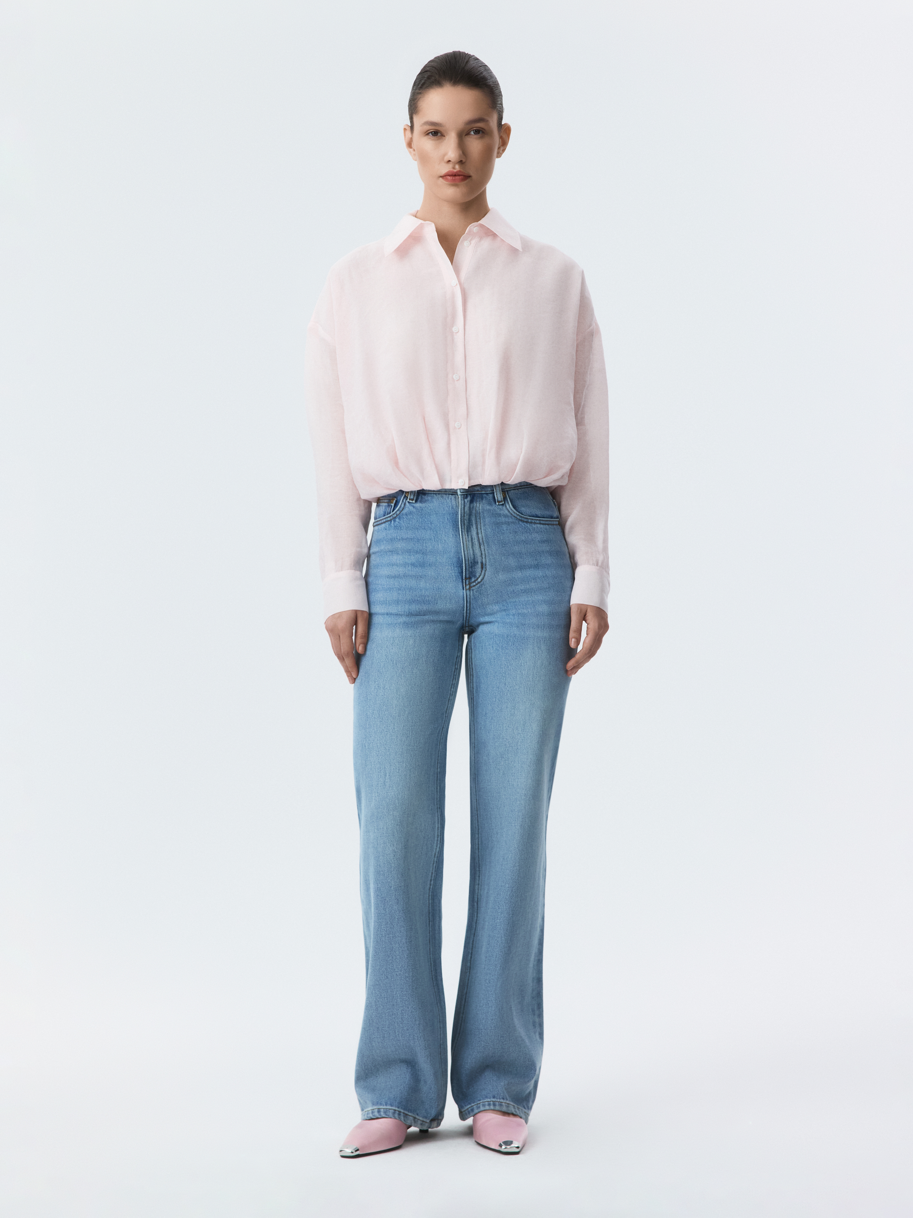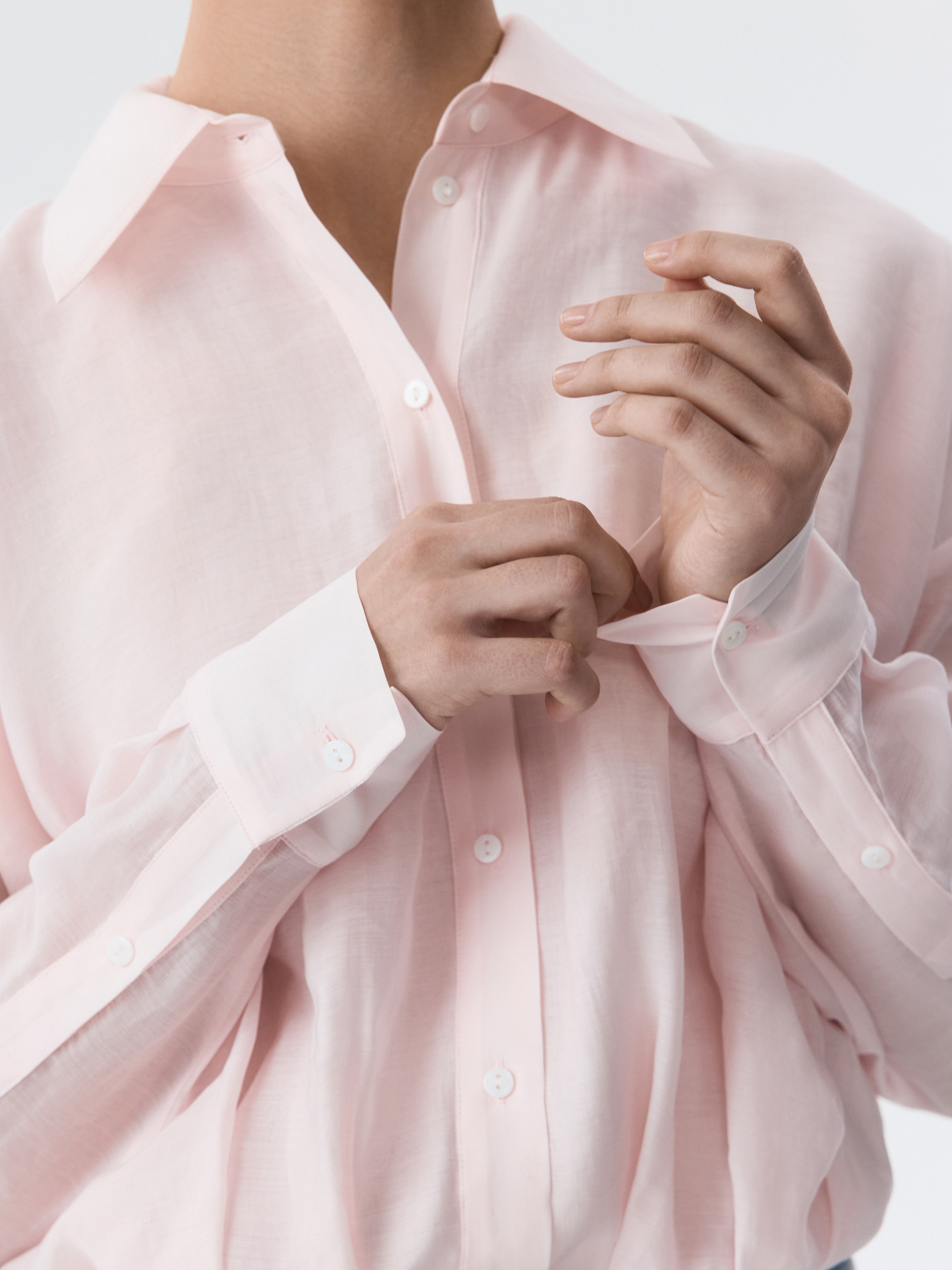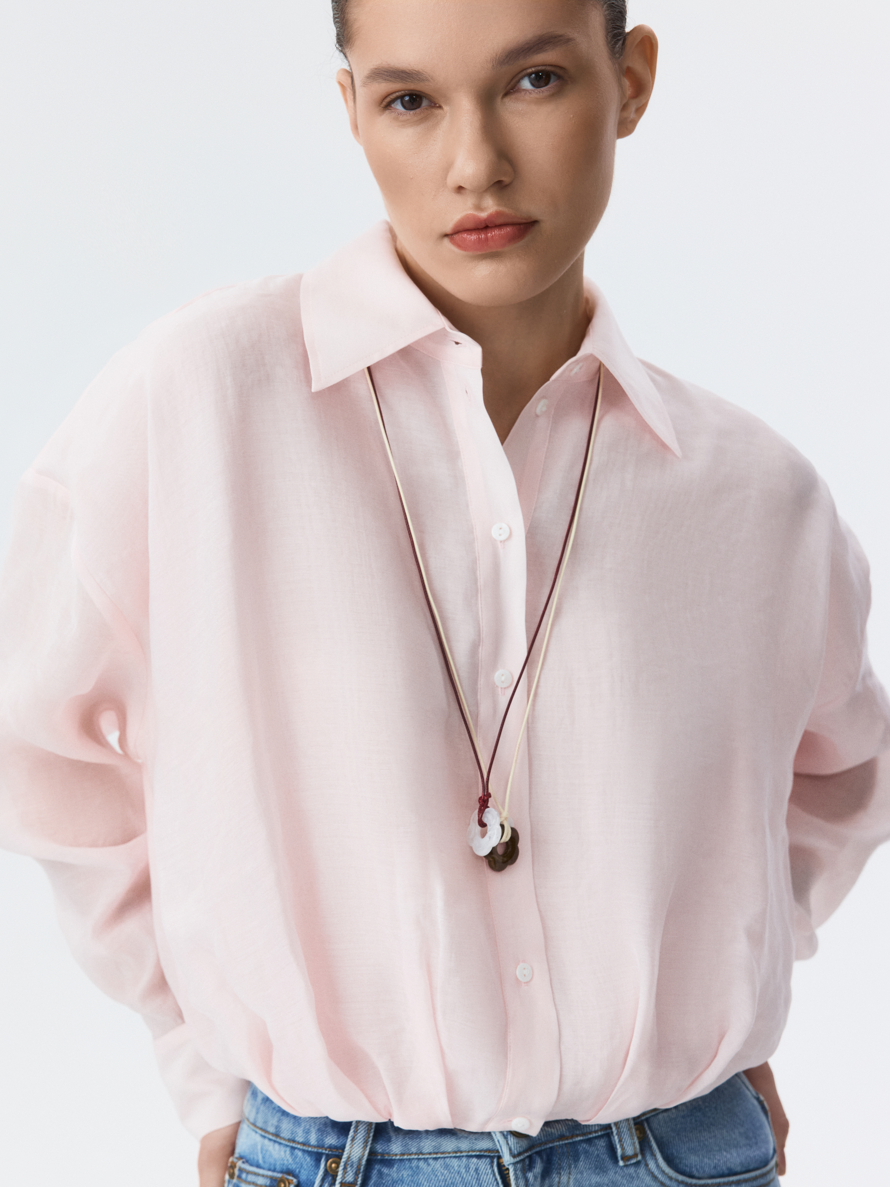 Укороченная блуза с защипами – это современная интерпретация классического предмета гардероба, которая придает образу свежесть и актуальность.  Тонкий полупрозрачный текстиль на основе лиоцелла (волокна целлюлозы) хорошо пропускает воздух и дарит комфорт.