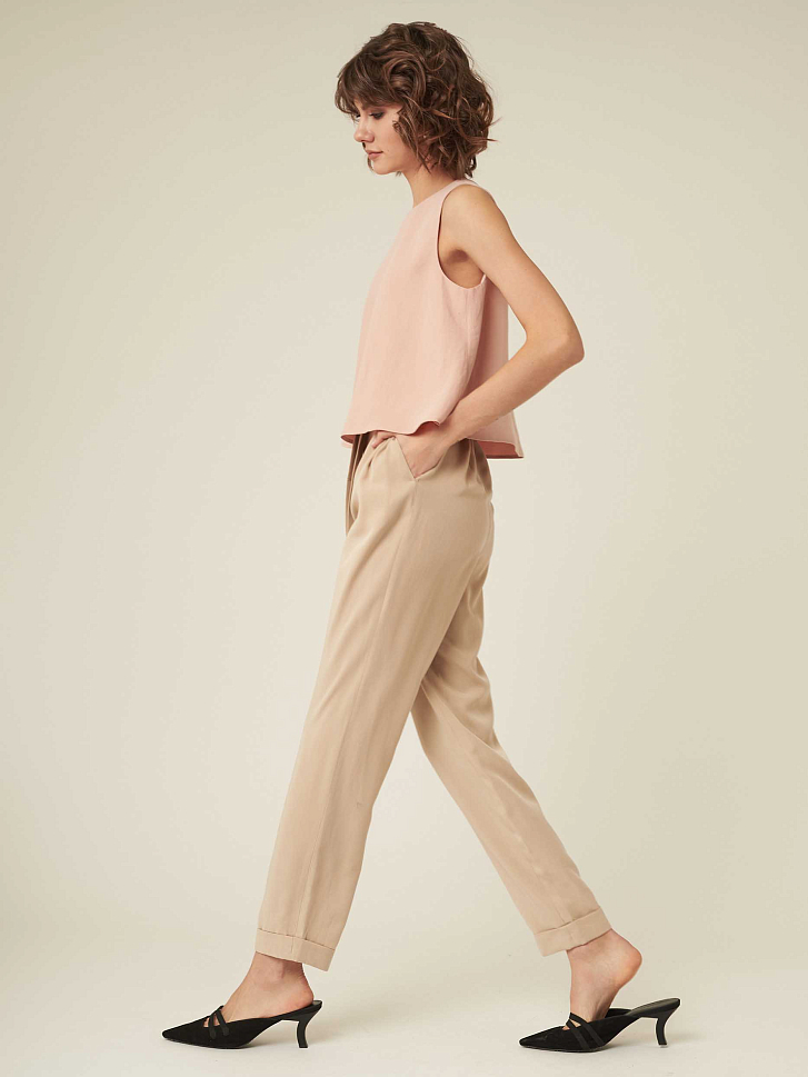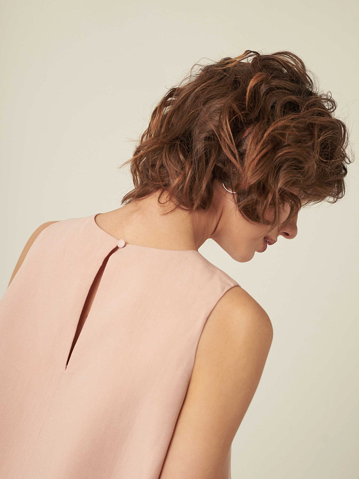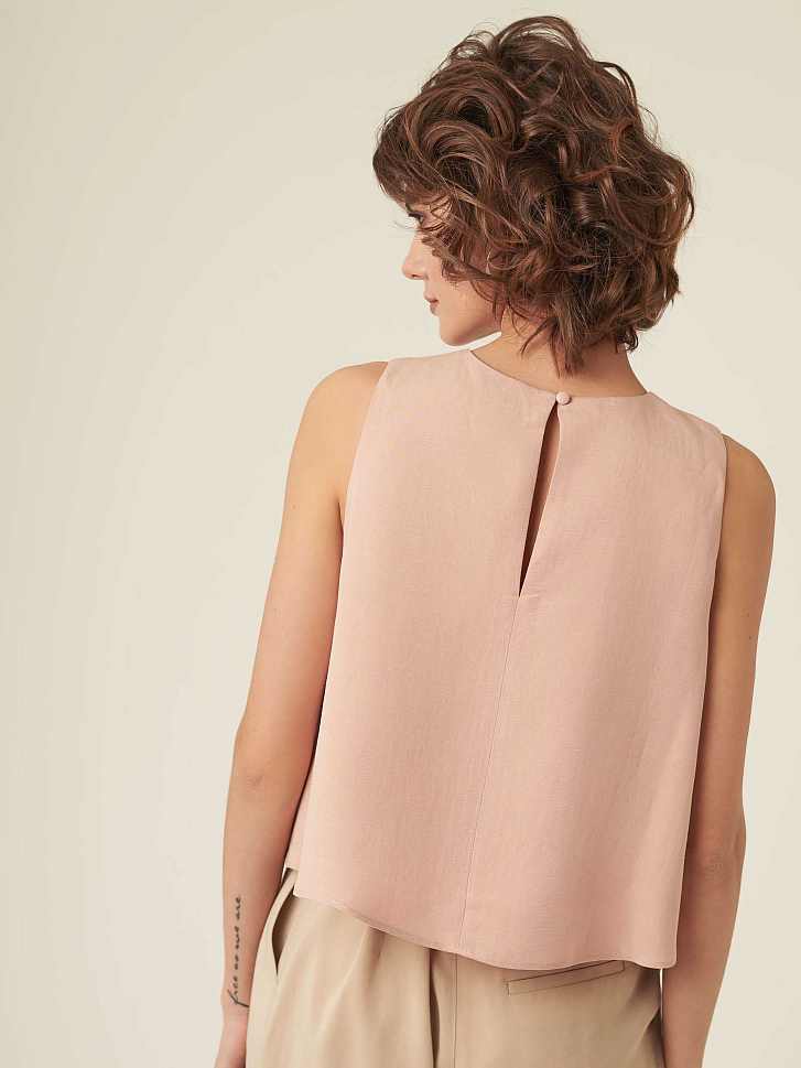 Укороченный топ свободного кроя. Застегивается на небольшую пуговицу на спинке. Изделие на подкладке.