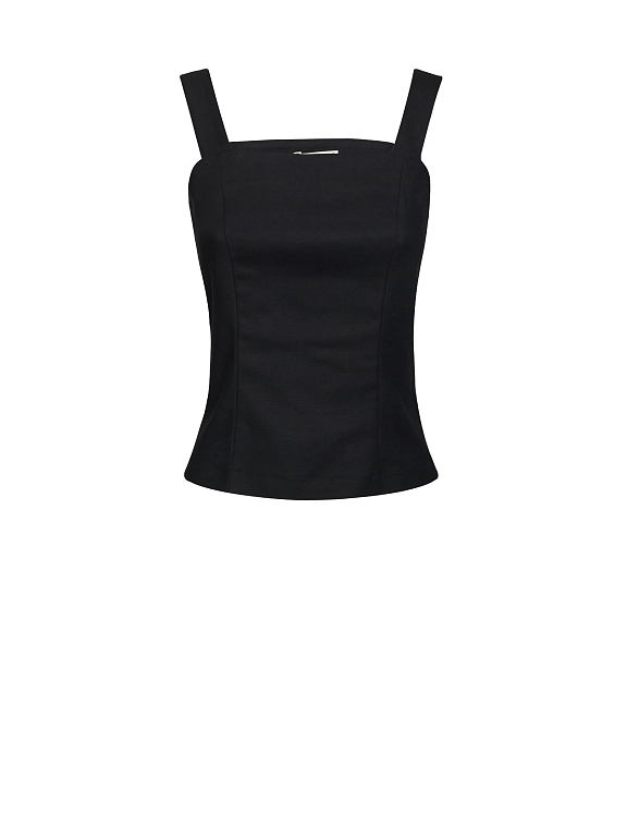Однотонный топ из плотного хлопка. Облегающий крой, широкие бретели, застежка на молнию сбоку.