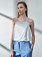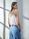 Базовый топ предоставляет простор для множества стилистических сочетаний. Легкий креповый текстиль продублирован шифоновой подкладкой, поэтому не просвечивает. Тонкие бретели, перекрещенные сзади, регулируются по длине для комфортной посадки.