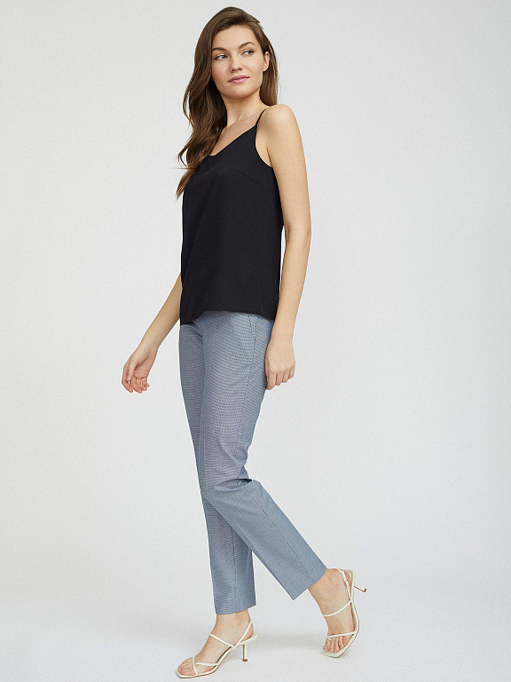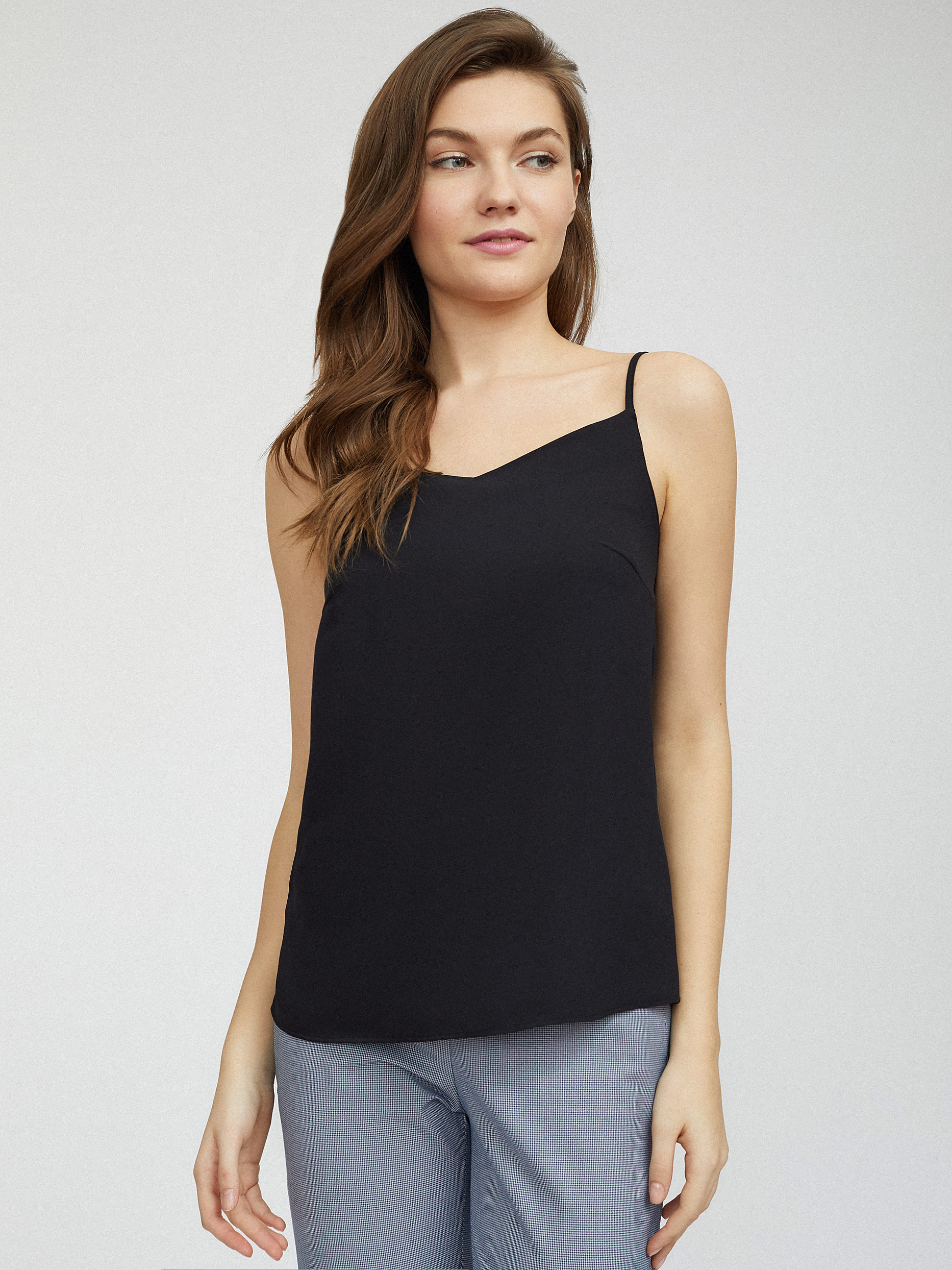 Однотонный топ свободного кроя. Тонкие регулируемые бретели, V-образный вырез.