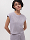 Ажурный топ – база летнего сезона. Плотная хлопковая пряжа с едва заметными пайетками совсем не колючая. В таком изделии не будет жарко благодаря сетчатой вязке, которая хорошо пропускает воздух. Сочетайте с любым контрастным низом.