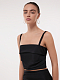 Укороченный топ дополнит эффектный образ. Плотный шуршащий текстиль хорошо держит форму объемных складок, а для комфорта продублирован гладкой подкладкой. Топ со съемными бретелями можно носить поверх футболок или как бандо, каждый раз создавая новый образ.