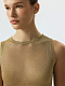 Блестящий топ добавит праздничное настроение в любые образы. Тонкий сетчатый трикотаж из вискозы с нитью люрекса хорошо тянется и не ограничивает свободу движений. Обратите внимание, что изделие без подкладки.