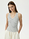 Акцентный топ в полоску – база, которая не нуждается в дополнительных аксессуарах. В меру плотный дышащий трикотаж из вискозы в рубчик мягко прилегает, а благодаря эластичным волокнам хорошо тянется. Модель хорошо сочетается с разными фактурами: деним, лён или футер.