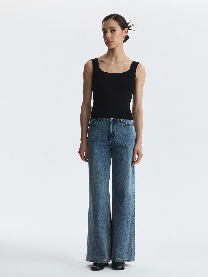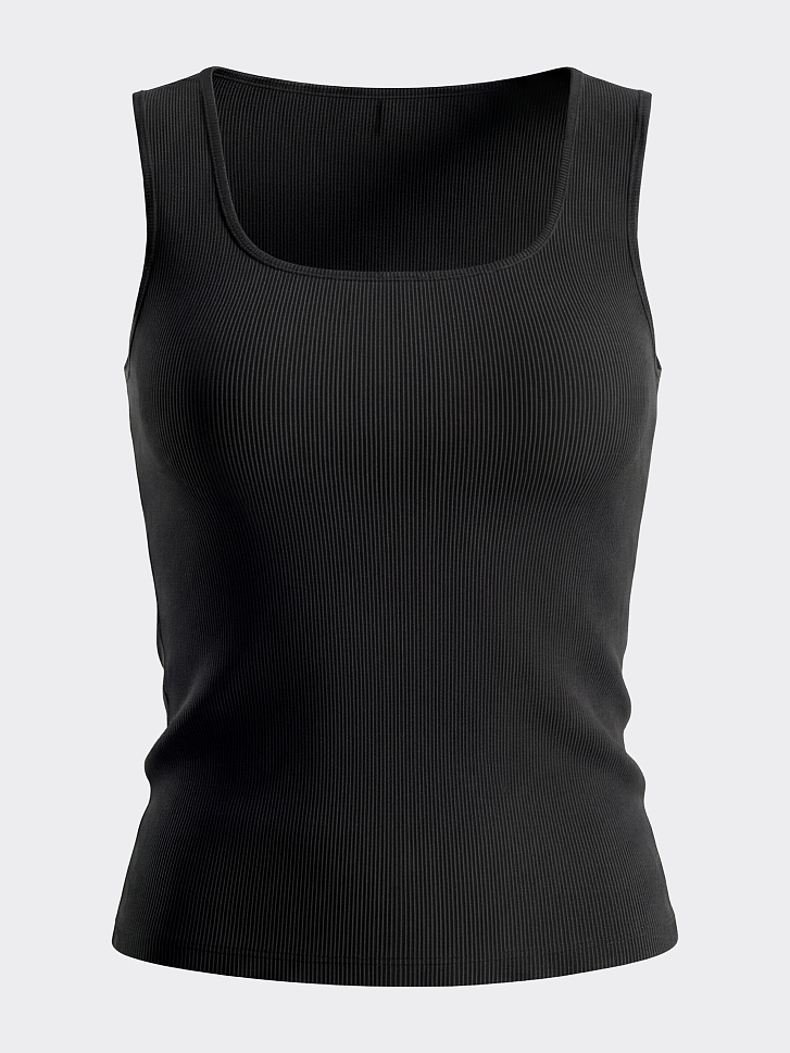 Базовый топ подходит к абсолютно любому низу. Тонкий трикотаж из вискозы в рубчик мягко прилегает, а благодаря эластичным волокнам хорошо тянется. Квадратный вырез подчеркнет изящную линию декольте.
