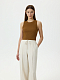 Облегающий кроп-топ в рубчик подойдет на каждый день или для деловых образов под жакет. Тонкий трикотаж из вискозы мягко прилегает, а благодаря эластичным волокнам хорошо тянется.