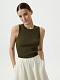 Облегающий кроп-топ в рубчик подойдет на каждый день или для деловых образов под жакет. Тонкий трикотаж из вискозы мягко прилегает, а благодаря эластичным волокнам хорошо тянется.