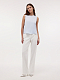 Прямой топ без рукавов можно носить под жакет в холодное время года или самостоятельно в жаркий сезон. Гладкий шелковистый текстиль мягко струится, не просвечивает и слегка охлаждает. Застежка на пуговицу сзади упрощает надевание.