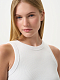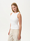 Однотонная майка без декора незаменимая в базовом гардеробе. Плотный хлопковый трикотаж в рубчик хорошо тянется и обеспечивает комфорт. Вырез и проймы окантованы швами, благодаря чему меньше вытягиваются.