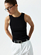 Однотонная майка без декора незаменимая в базовом гардеробе. Плотный хлопковый трикотаж в рубчик хорошо тянется и обеспечивает комфорт. Вырез и проймы окантованы швами, благодаря чему меньше вытягиваются.