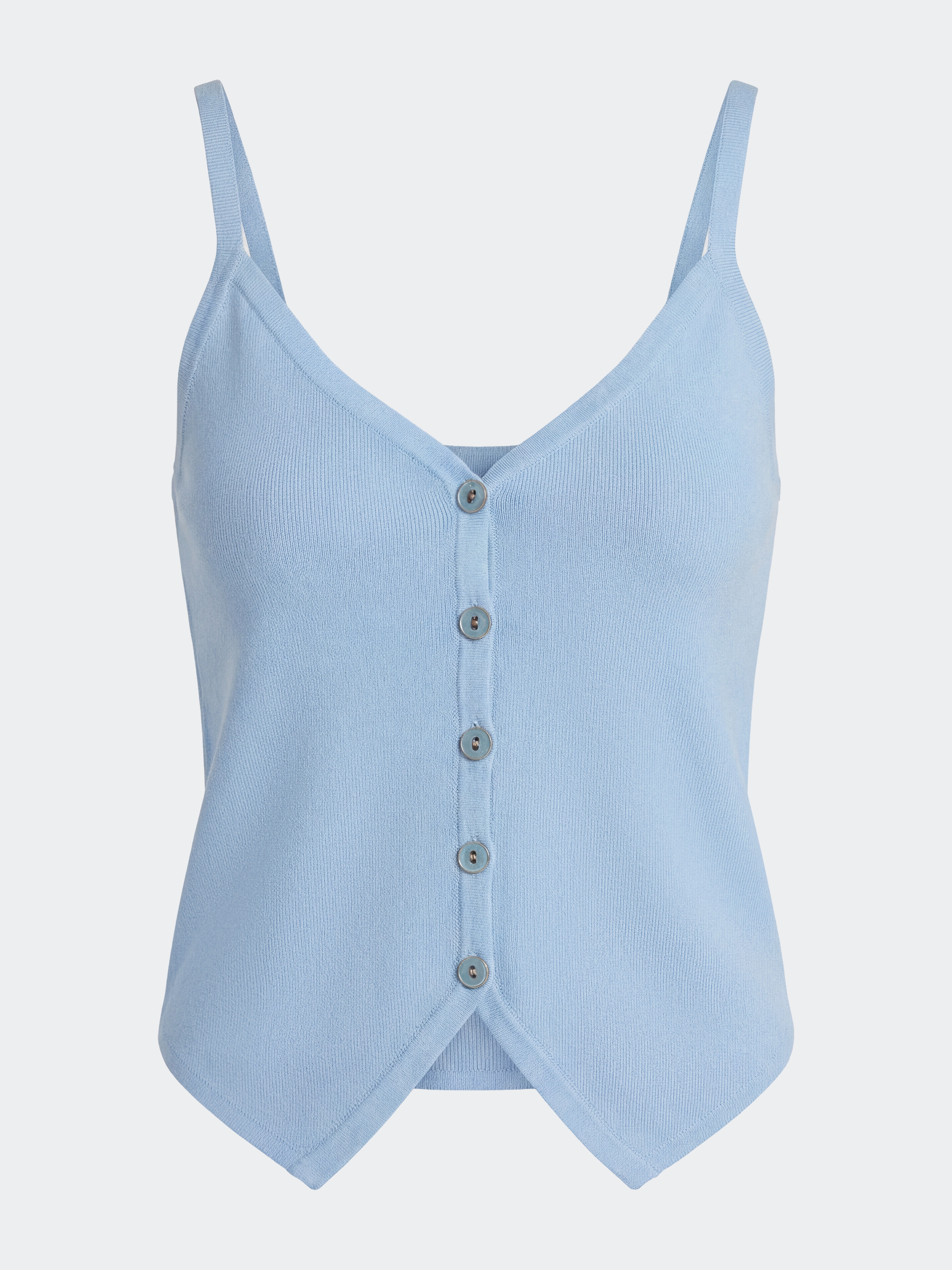 Топ на тонких бретелях – незаменимая модель на теплый сезон. Гладкий трикотаж на основе вискозы мягко прилегает, а благодаря волокнам нейлона хорошо тянется. V-вырез подчеркивает линию декольте.