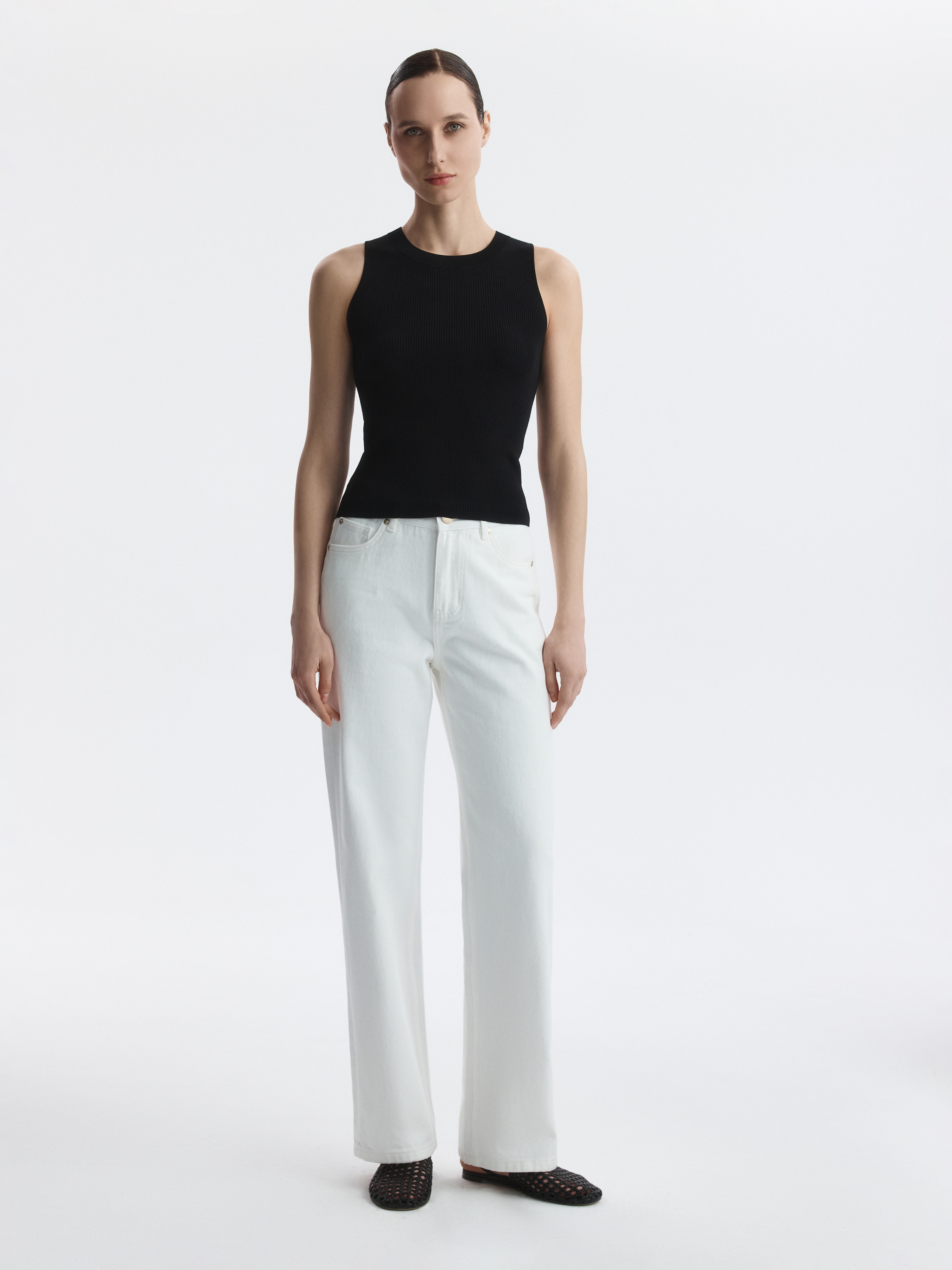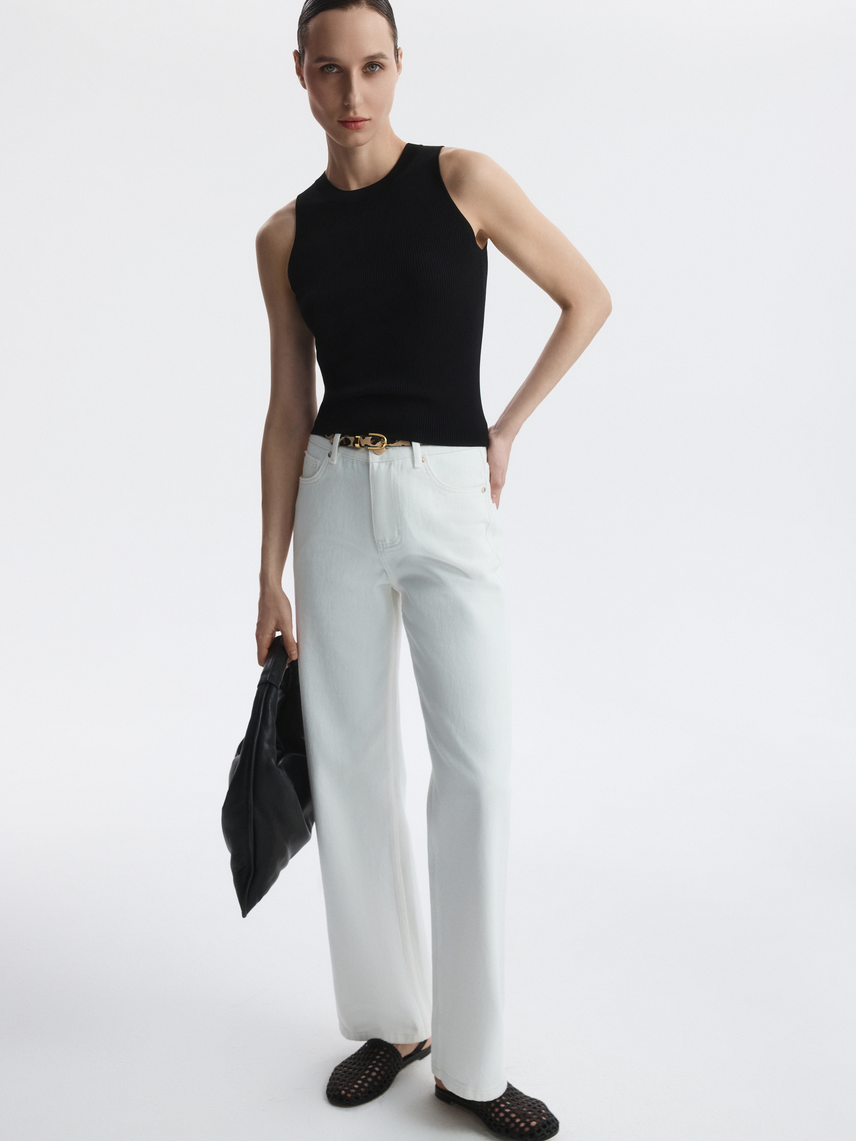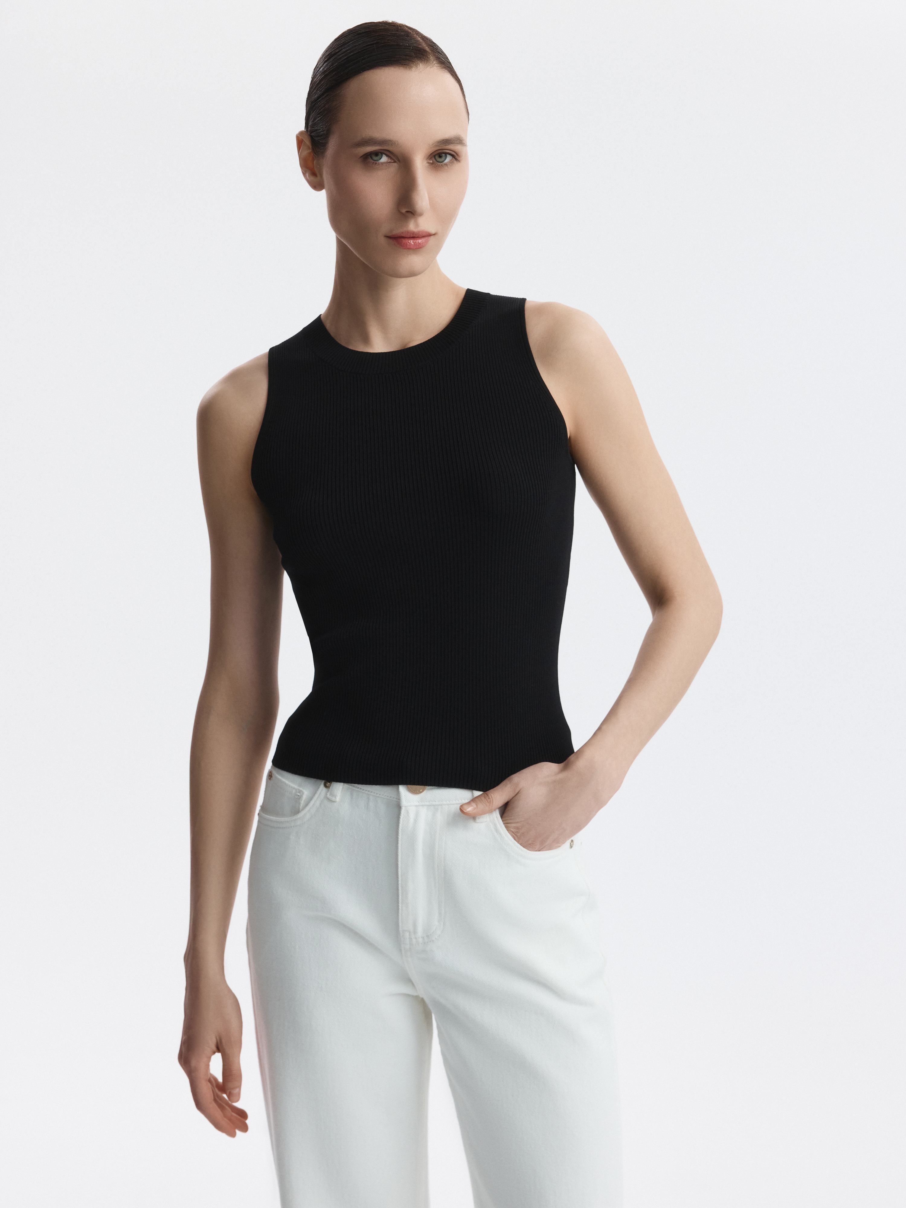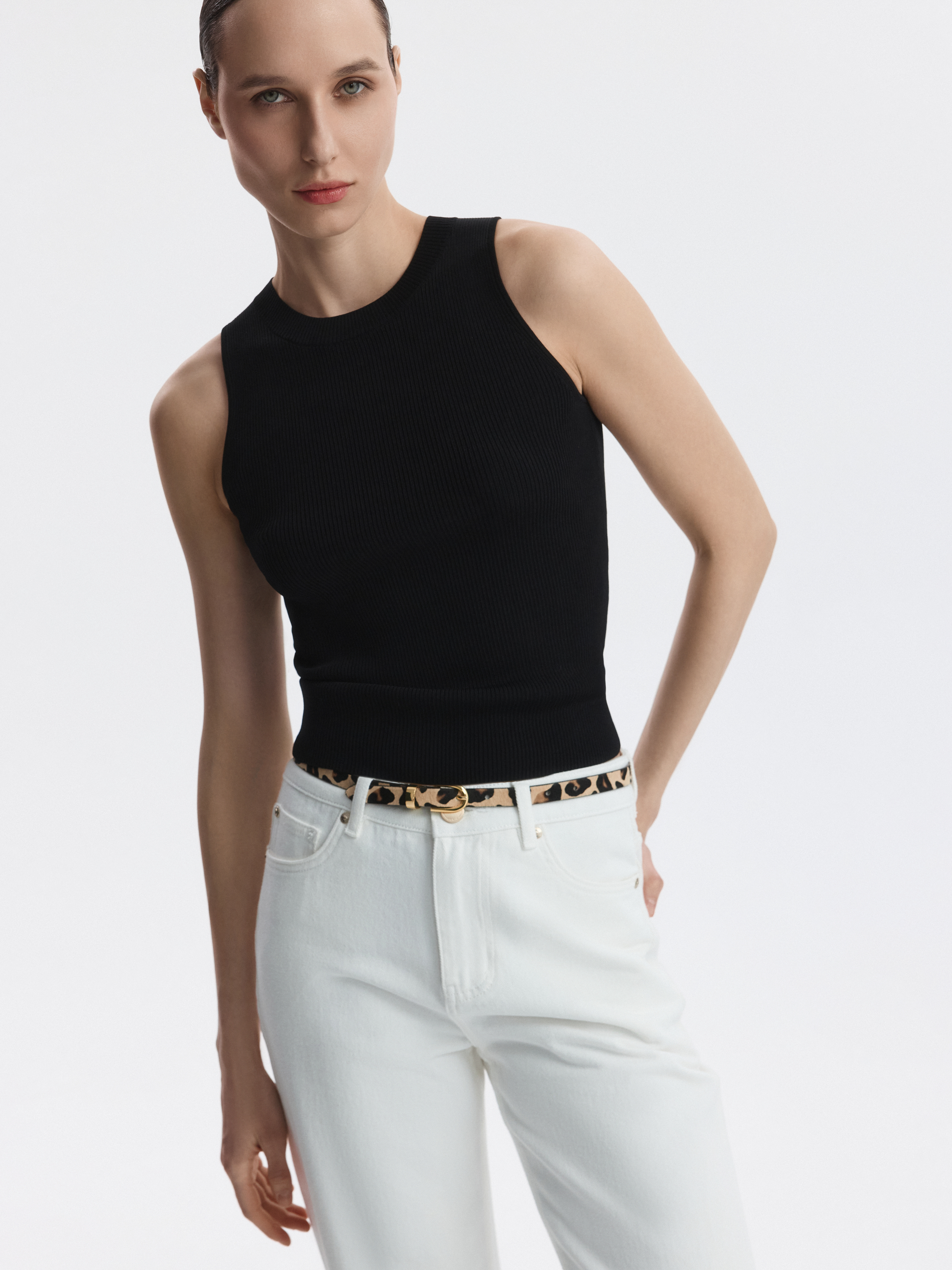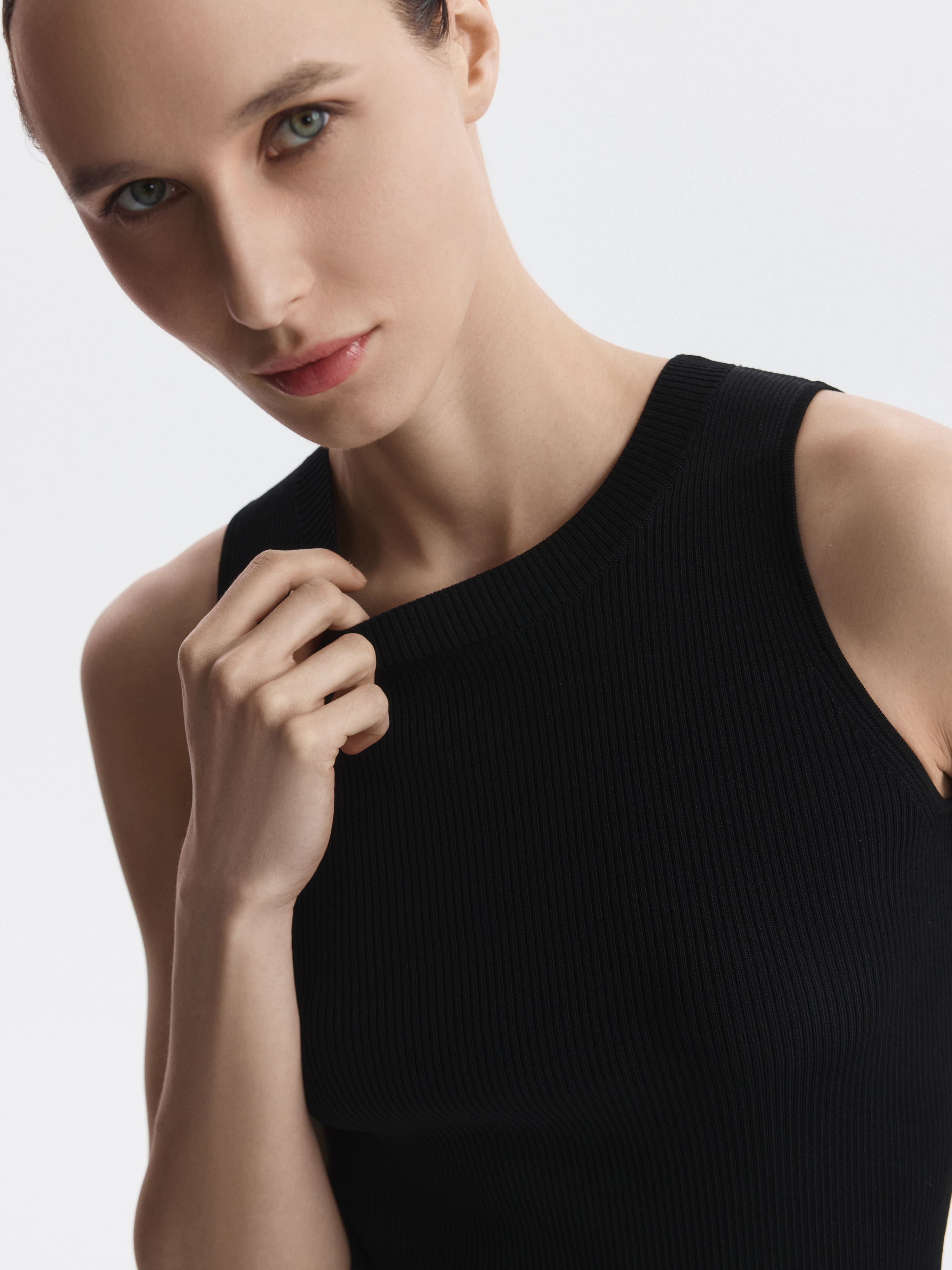 Облегающий кроп-топ в рубчик подойдет на каждый день или для деловых образов под жакет. Тонкий трикотаж из вискозы мягко прилегает, а благодаря эластичным волокнам хорошо тянется.